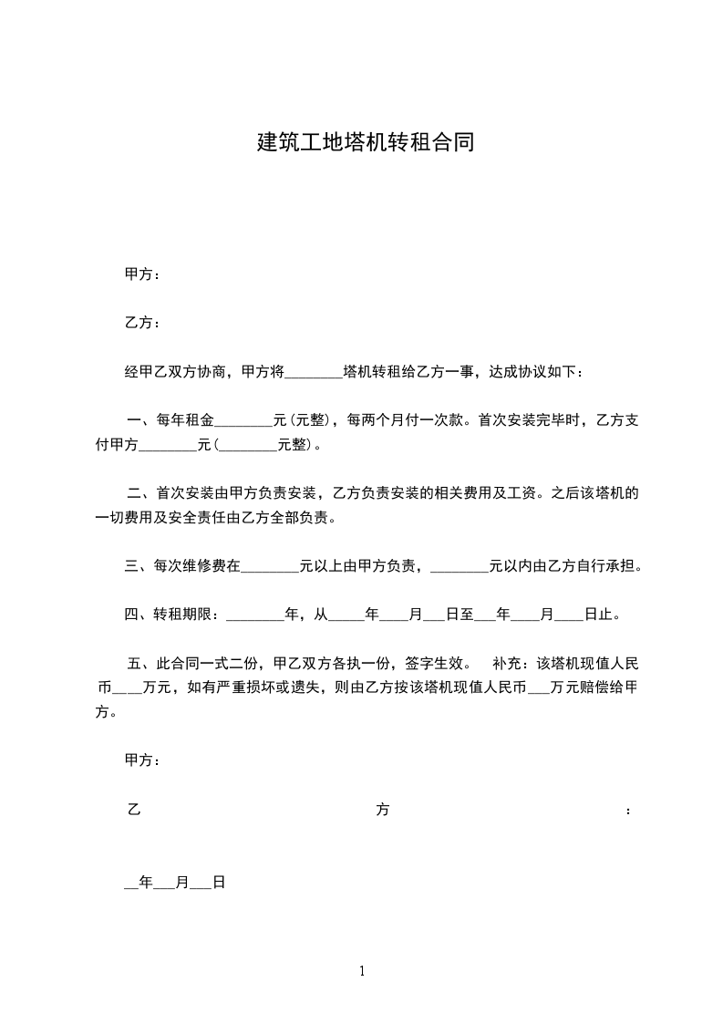 经甲乙双方协商,甲方将________塔机转租给乙方一事,达成协议如下: