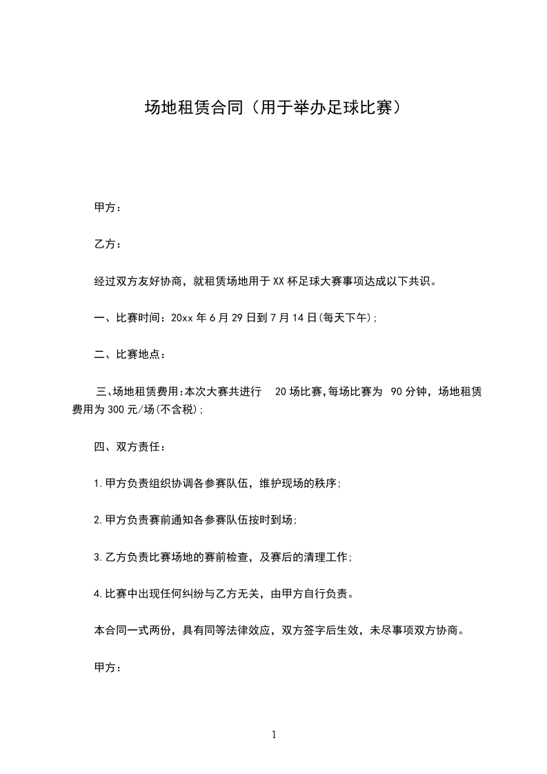 经过双方友好协商,就租赁场地用于XX杯足球大赛事项达成以下共识。