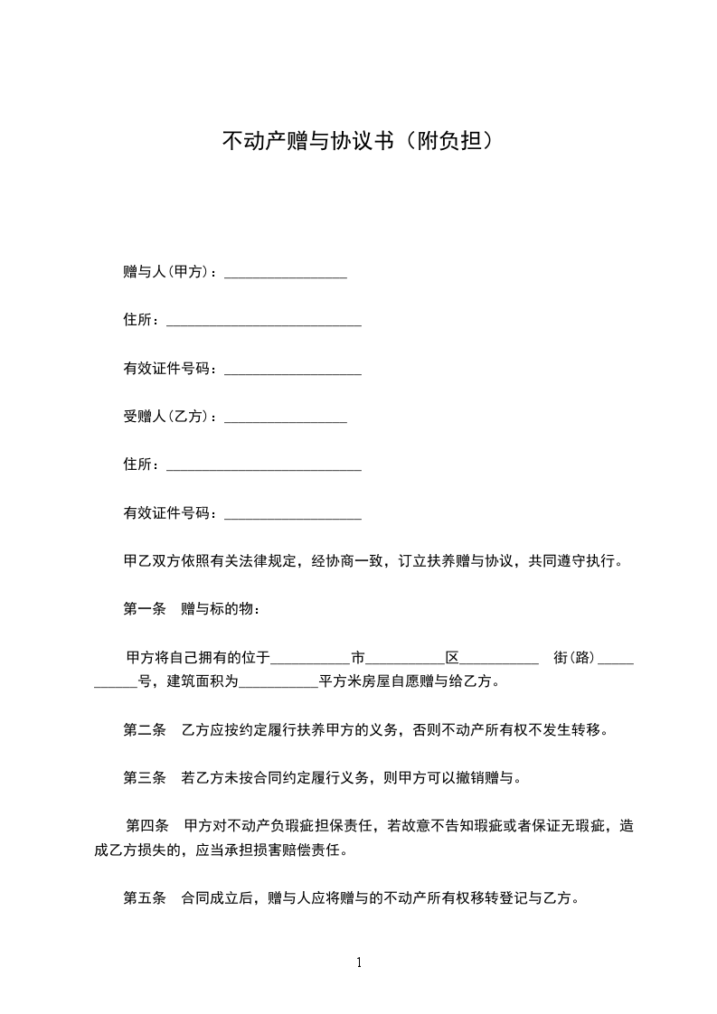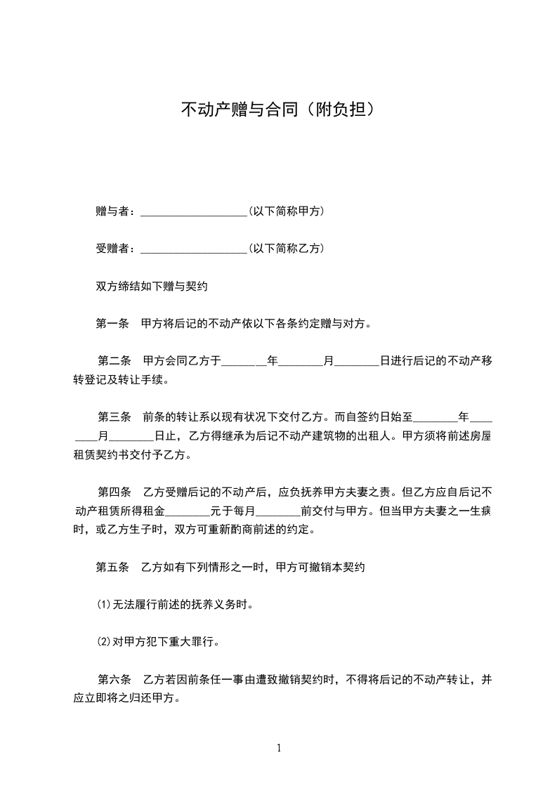 赠与人___________、受赠人___________因附负担赠与不动产,达成如下协议: