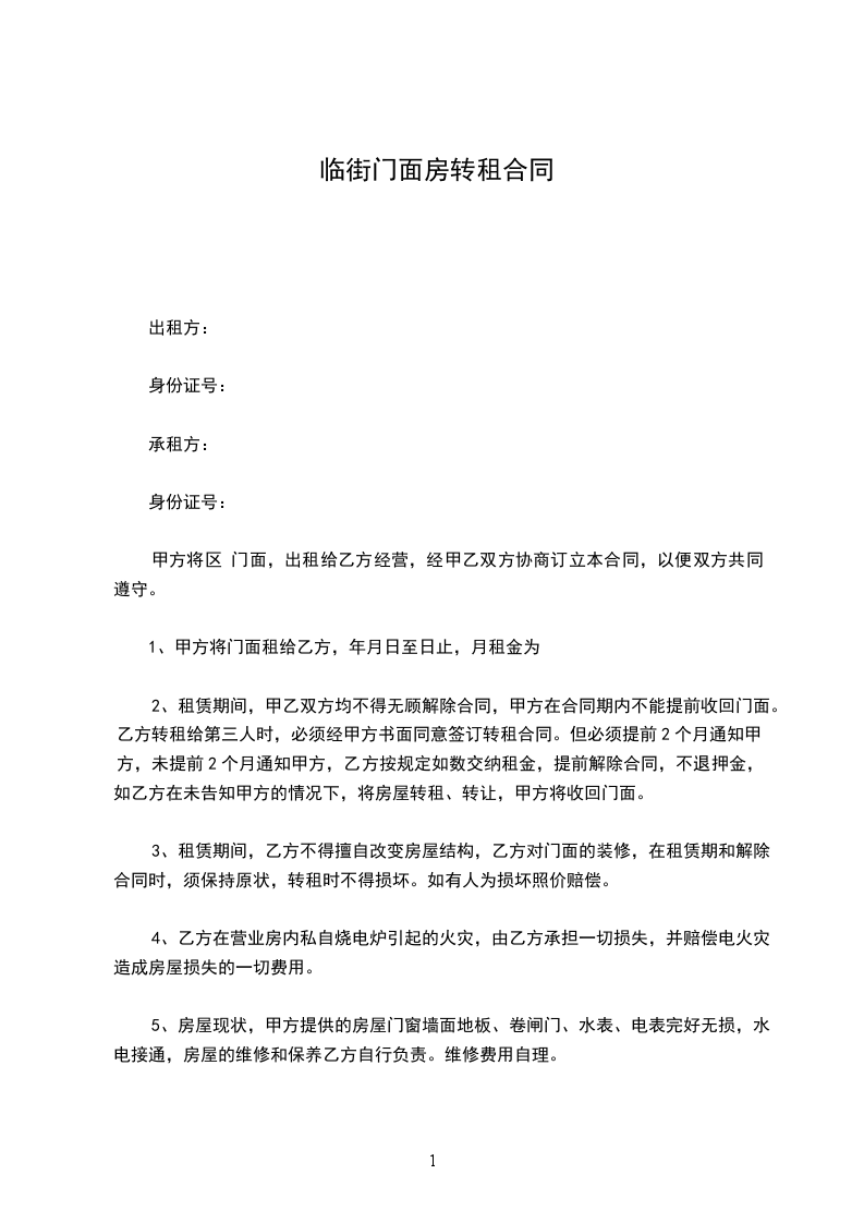承租方(乙方): 男/女, 年 月 日出生,身份证号码