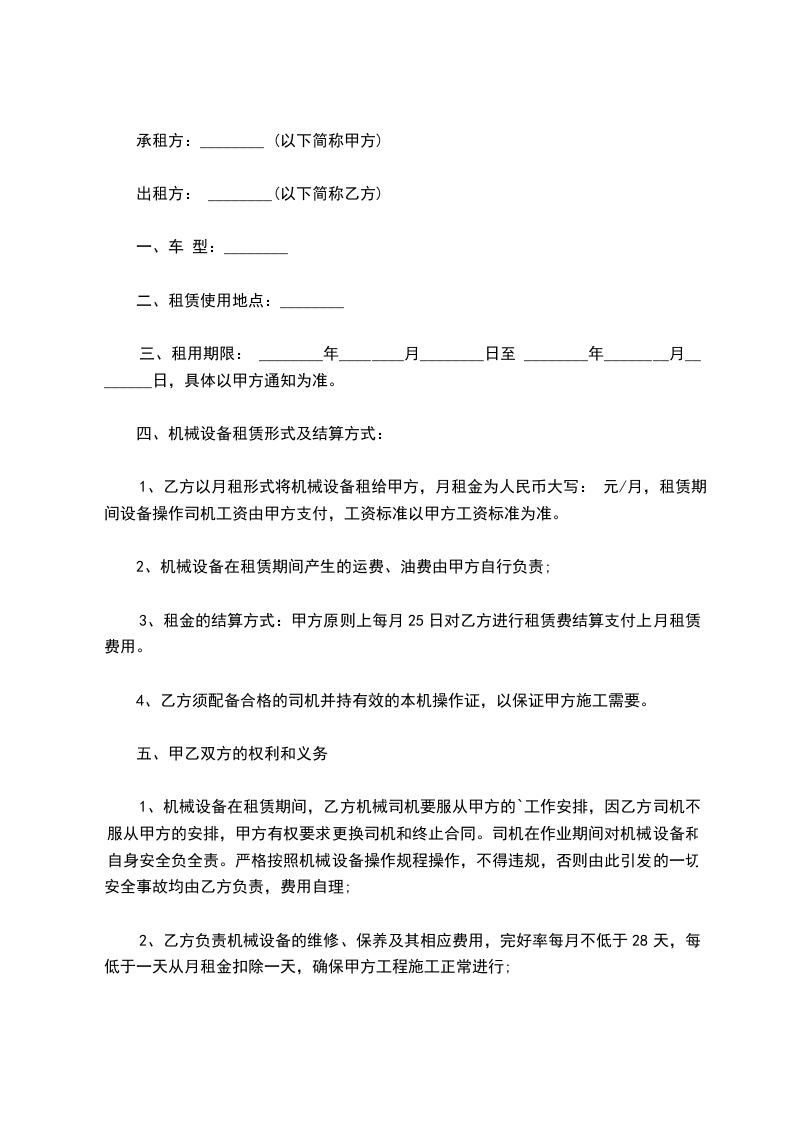 兹因乙方生产经营需要,经甲乙双方友好协商,就甲方向乙方出租出租自有的汽车达成协议条款如下,以资双方共同信守: