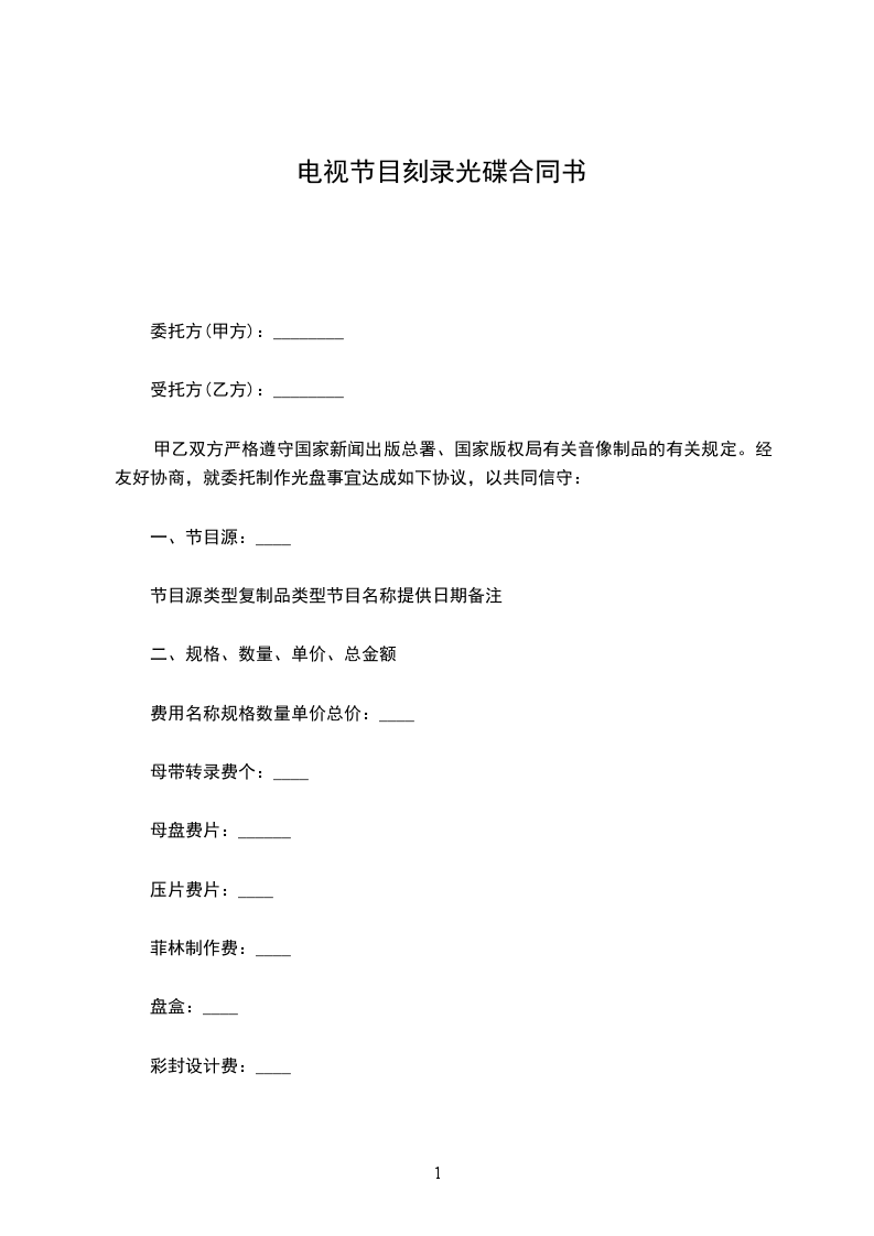 2、委托方应在合同签订后,向受托方付保证质量的、可用于复制的节目源类型及必备相关资料,如:节目源,菲林及打样,包装材料等等。