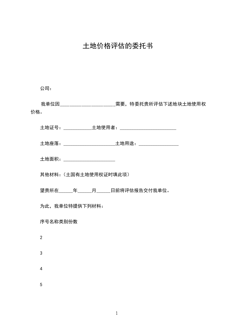 甲方因办理 需要,现将坐落于 ,土地面积 ㎡,土地使用证号 ,地号 的土地委托乙方进行评估,双方将有关事项协商如下: