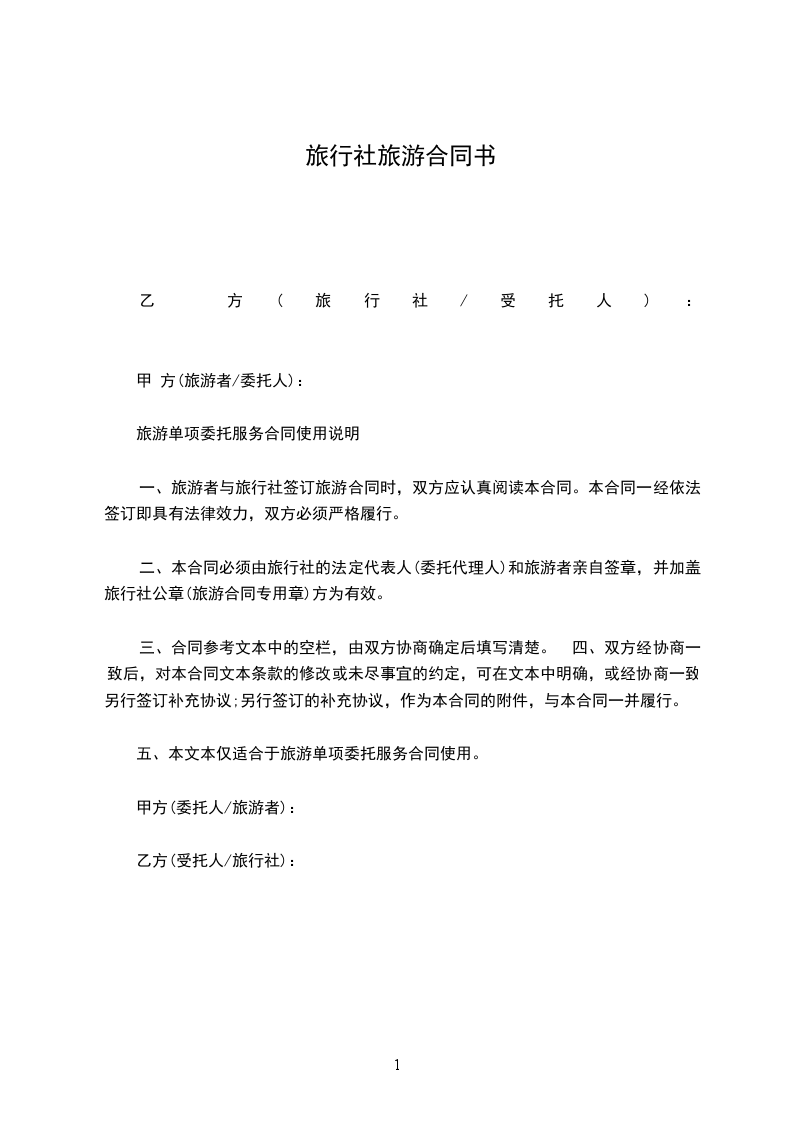 旅游单项委托服务合同使用说明