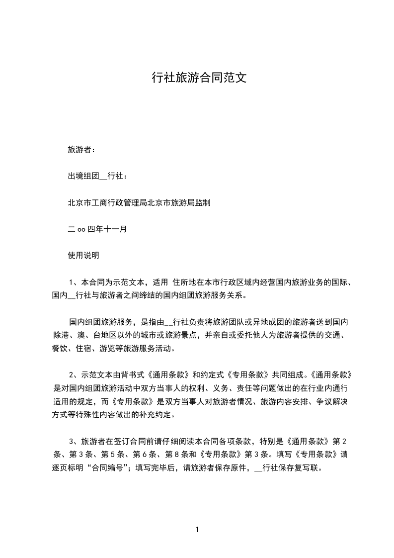 五、本文本仅适合于旅游单项委托服务合同使用。