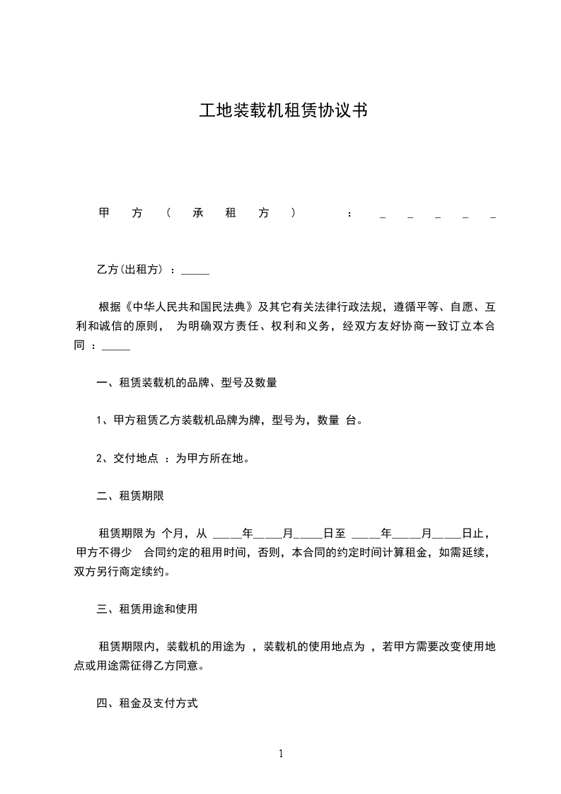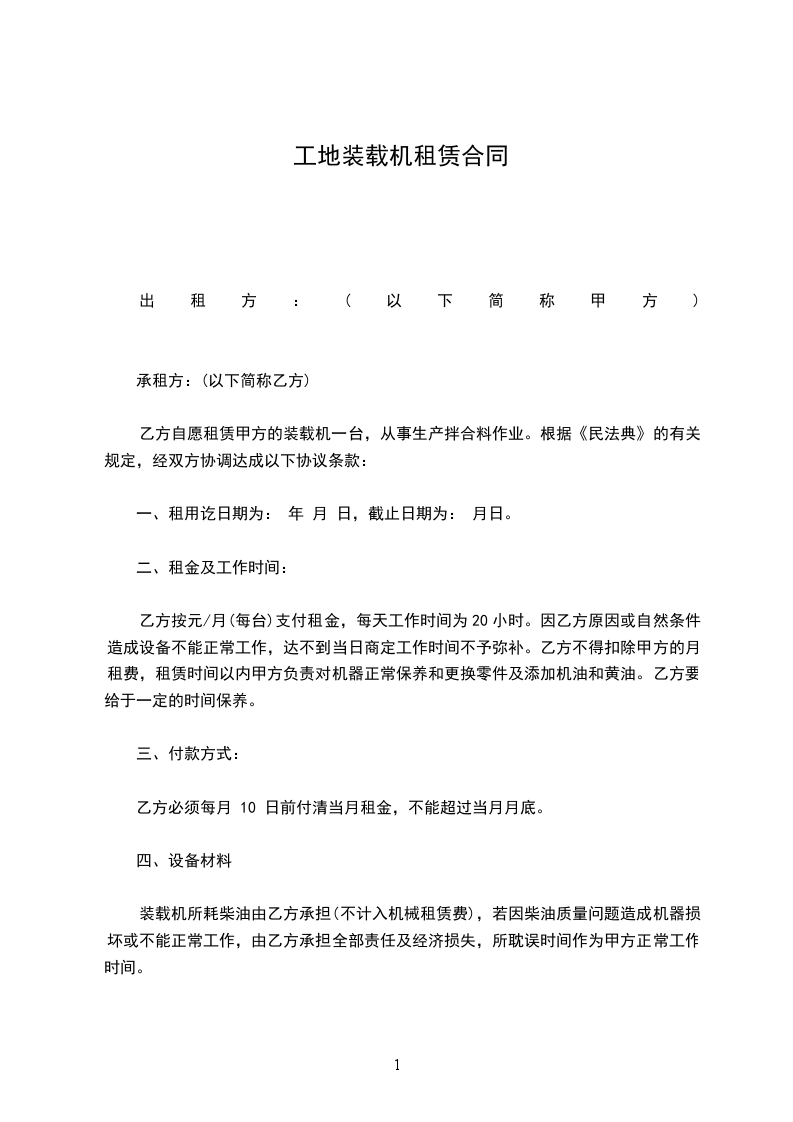 乙方自愿租赁甲方的装载机一台,从事生产拌合料作业。根据《民法典》的有关规定,经双方协调达成以下协议条款: