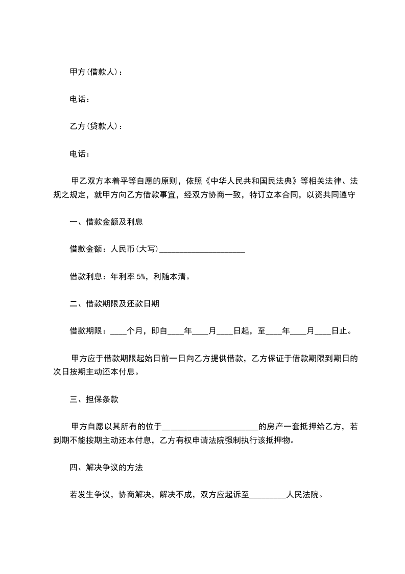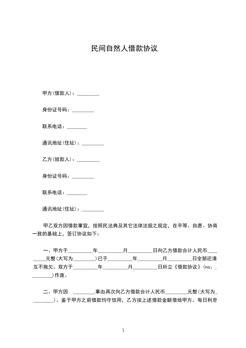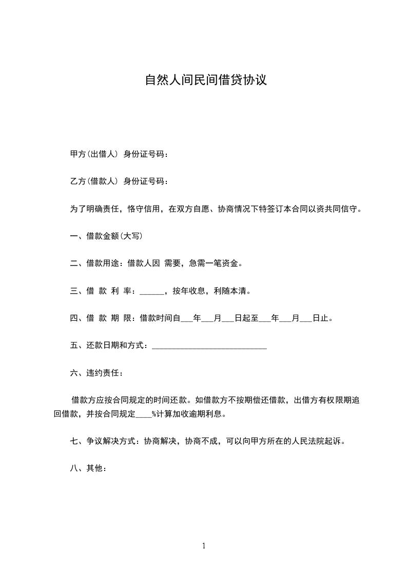 甲方(借款人) 乙方(出借人)
