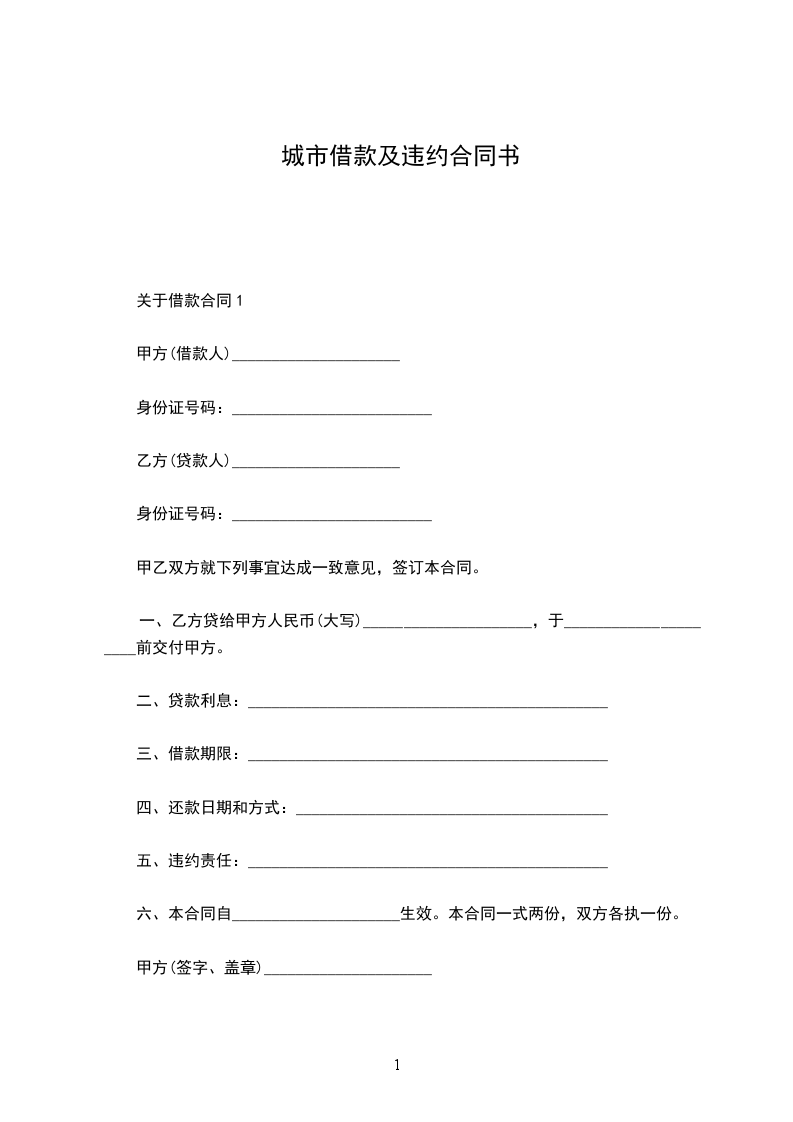 一、乙方贷给甲方人民币(大写)_____________________,于_____________________前交付甲方。