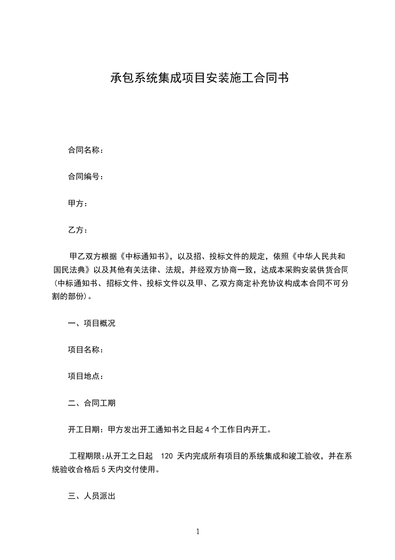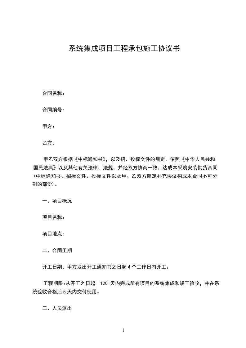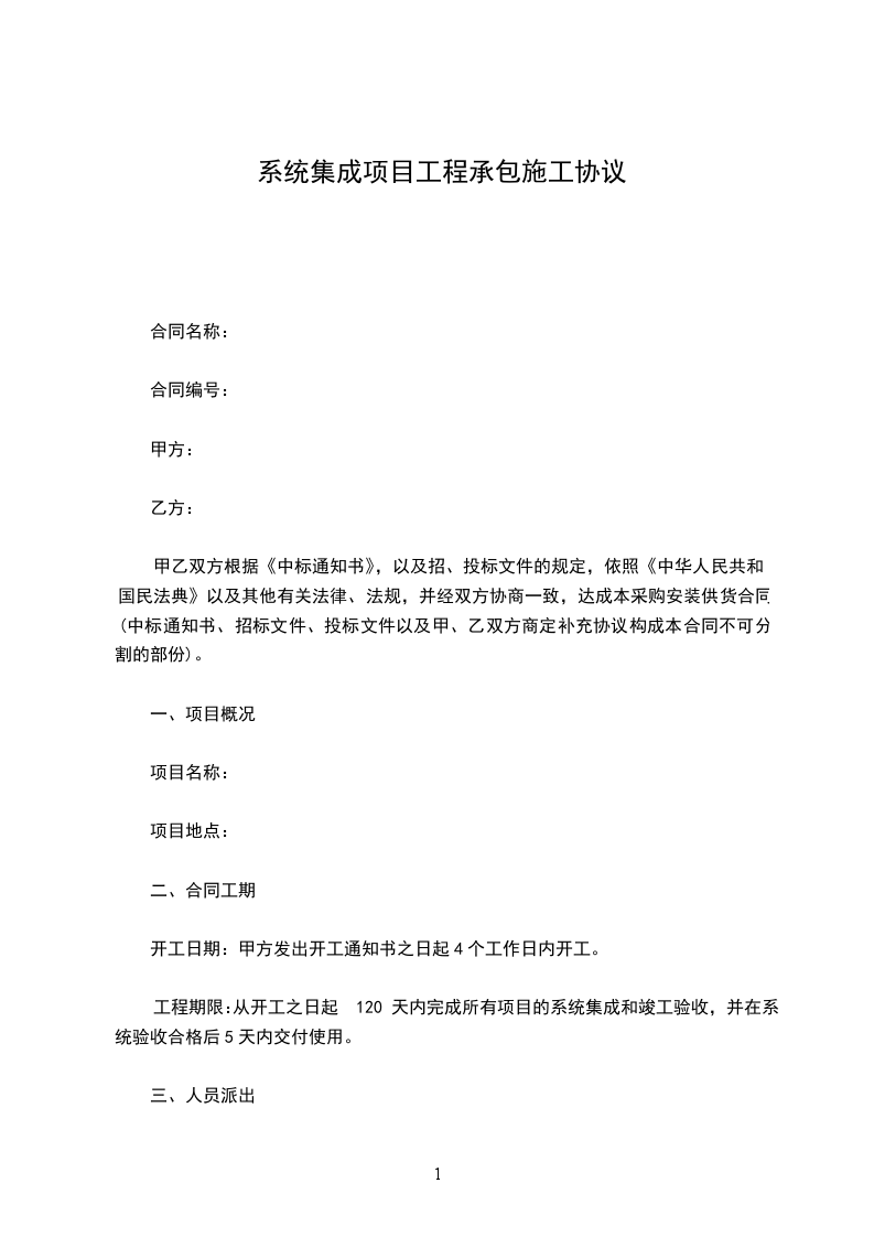1.乙方必须在开工之日起 120 天内完成所有项目的系统集成和竣工验收,并在系统验收合格后5天内交付使用。