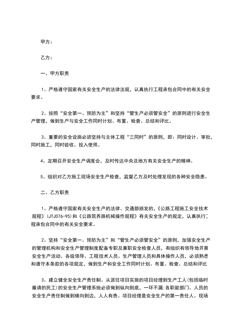 1、严格遵守国家有关安全生产的法律、交通部颁发的,《公路工程施工安全技术规程》(JTJ076-95)和《公路筑养路机械操作规程》有关安全生产的规定,认真执行工程承包合同中的有关安全要求。