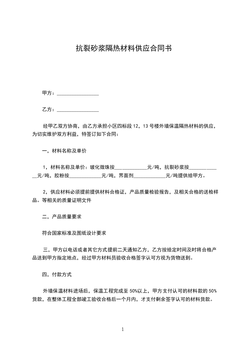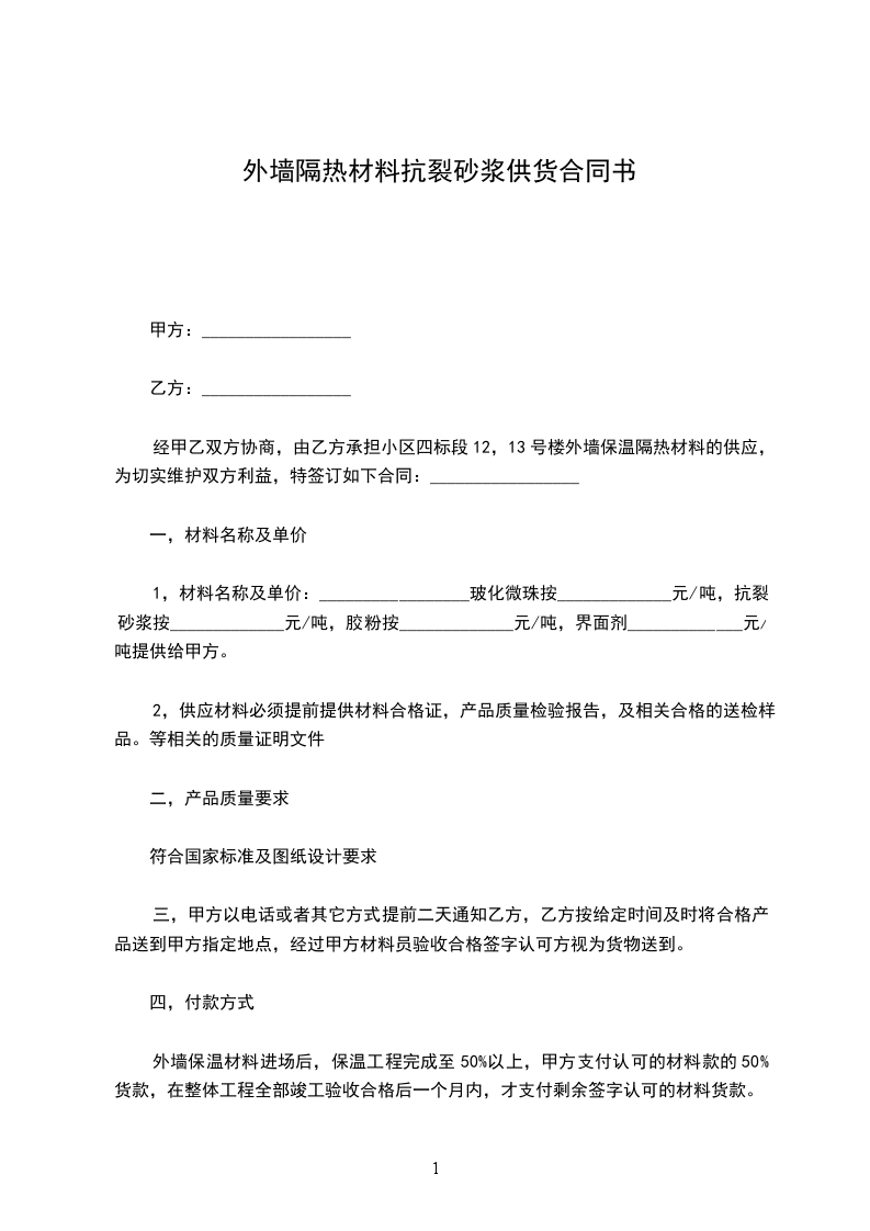 1,材料名称及单价:_________________玻化微珠按_____________元/吨,抗裂砂浆按_____________元/吨,胶粉按_____________元/吨,界面剂_____________元/吨提供给甲方。