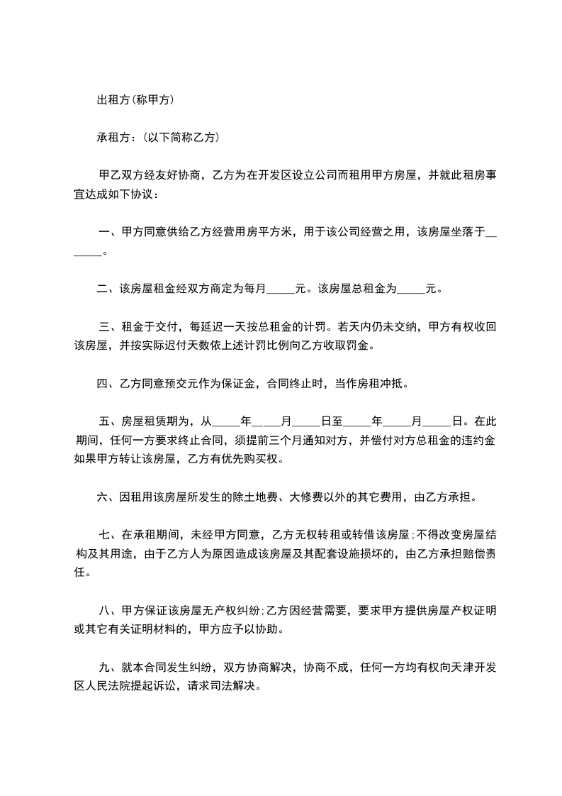一、甲方于_____年_____月_____日将位于福清市融侨开发区福清福明包装工业有限公司厂区一号厂房二楼60平方米左右租给乙方做为办公使用。(附件图案)