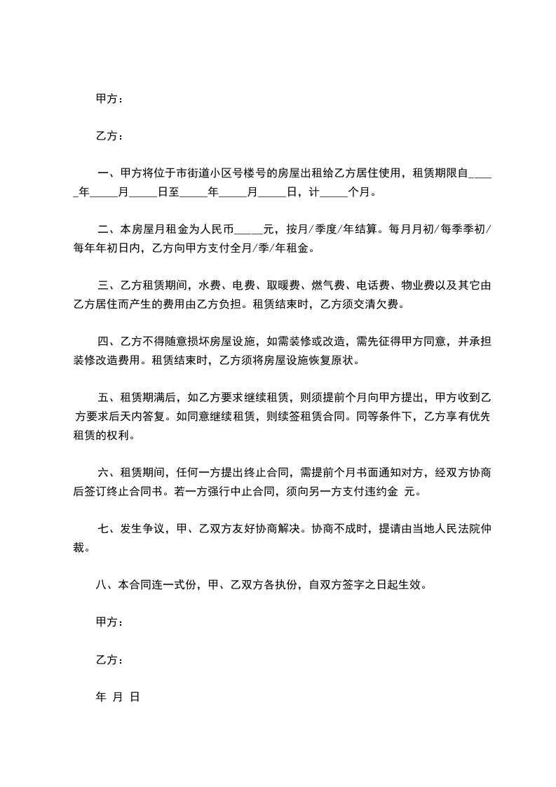 五、乙方向甲方交付一个月租金(元)做为押金,于合同期满后经甲方验收房屋正常后退还乙方。