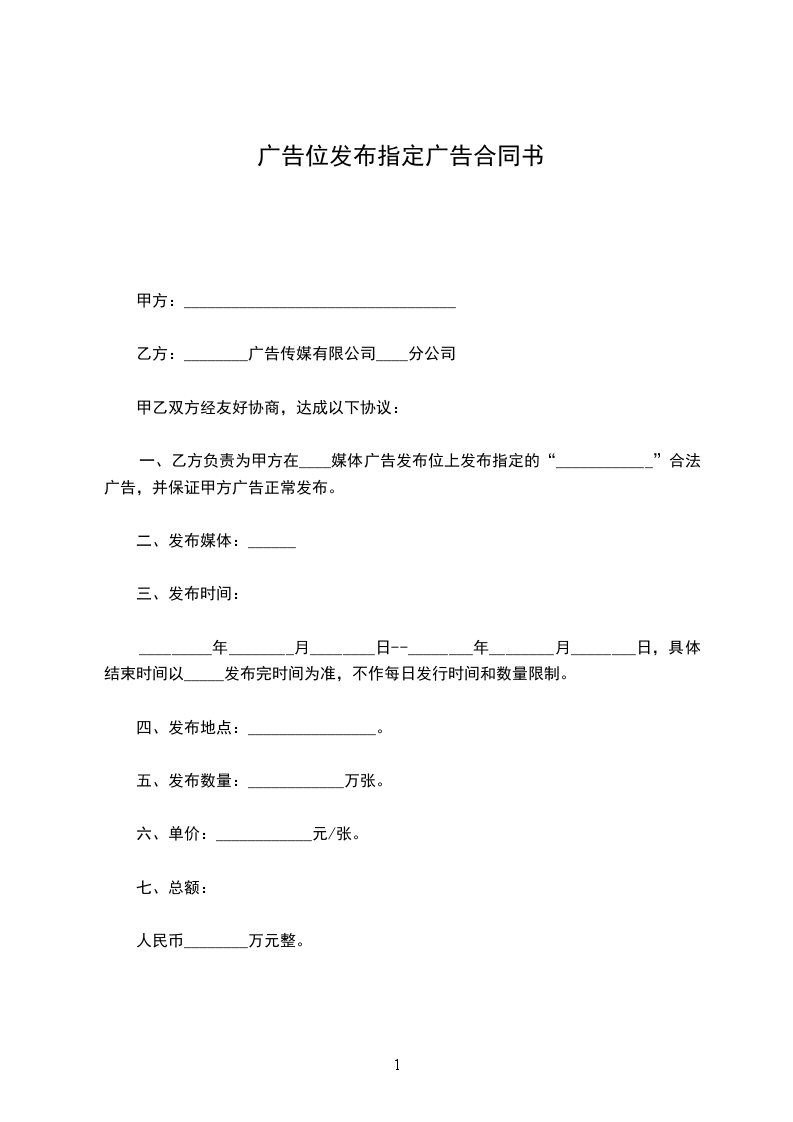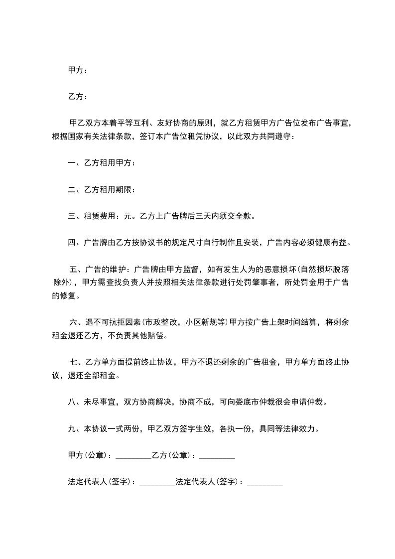 甲乙双方本着平等互利、友好协商的原则,就乙方租赁甲方广告位发布广告事宜,根据国家有关法律条款,签订本广告位租凭协议,以此双方共同遵守: