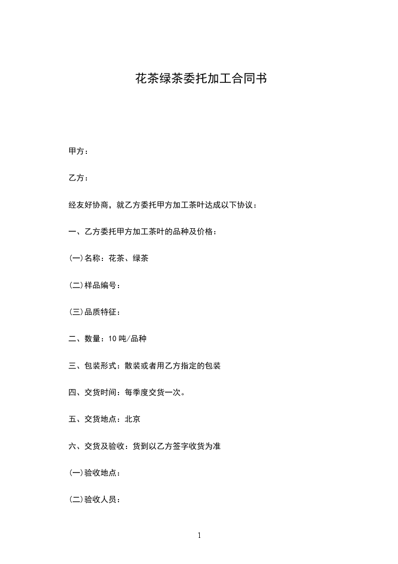 经友好协商,就乙方委托甲方加工茶叶达成以下协议: