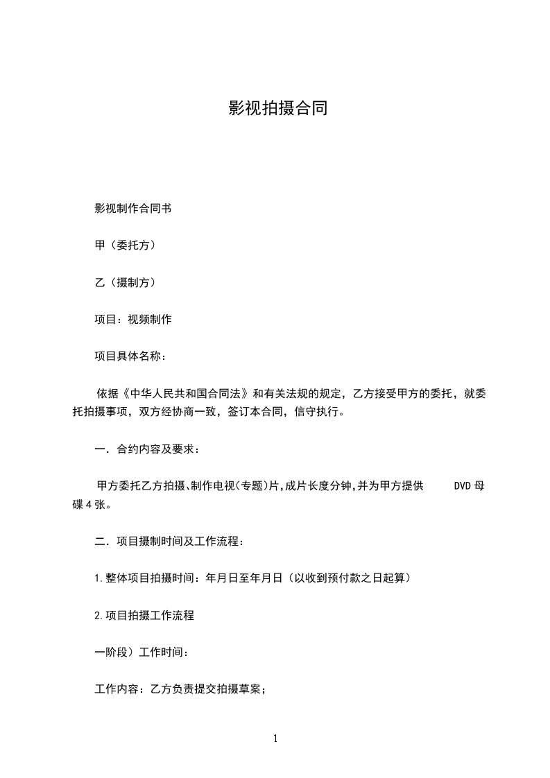 一、工作范围 :乙方按甲方要求进行广告摄影。并按照导演的指定和要求进行表演。拍摄时间为年 月 日。