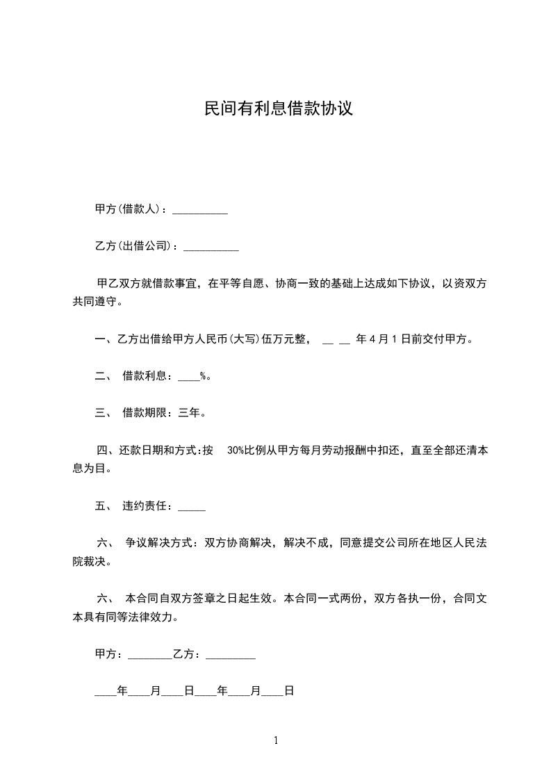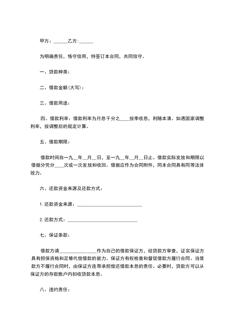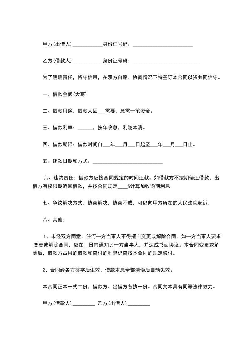 一、乙方贷给甲方人民币(大写)_____________________,于_____________________前交付甲方。