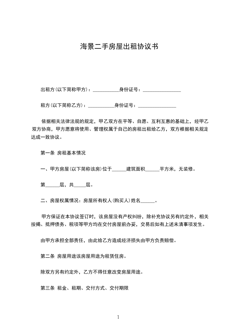 1.甲方保证房屋的合法性,在房屋合同期间不得无故不出租此房。否则,按__________月租金交纳违约金。
