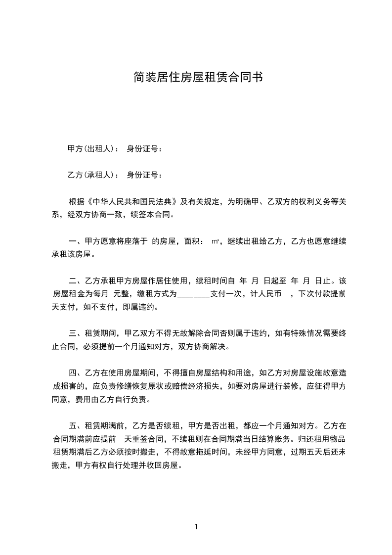 五、租赁期满前,乙方是否续租,甲方是否出租,都应一个月通知对方。乙方在合同期满前应提前 天重签合同,不续租则在合同期满当日结算账务。归还租用物品,租赁期满后乙方必须按时搬走,不得故意拖延时间,未经甲方同意,过期五天后还未搬走,甲方有权自行处理并收回房屋。