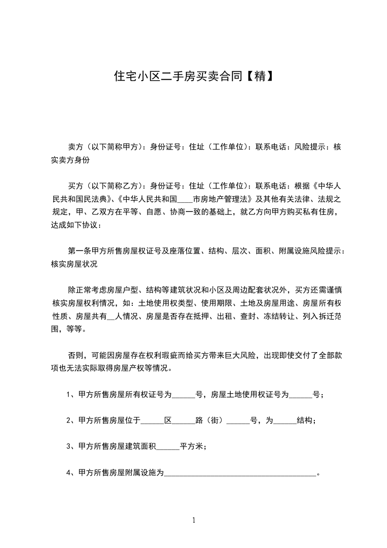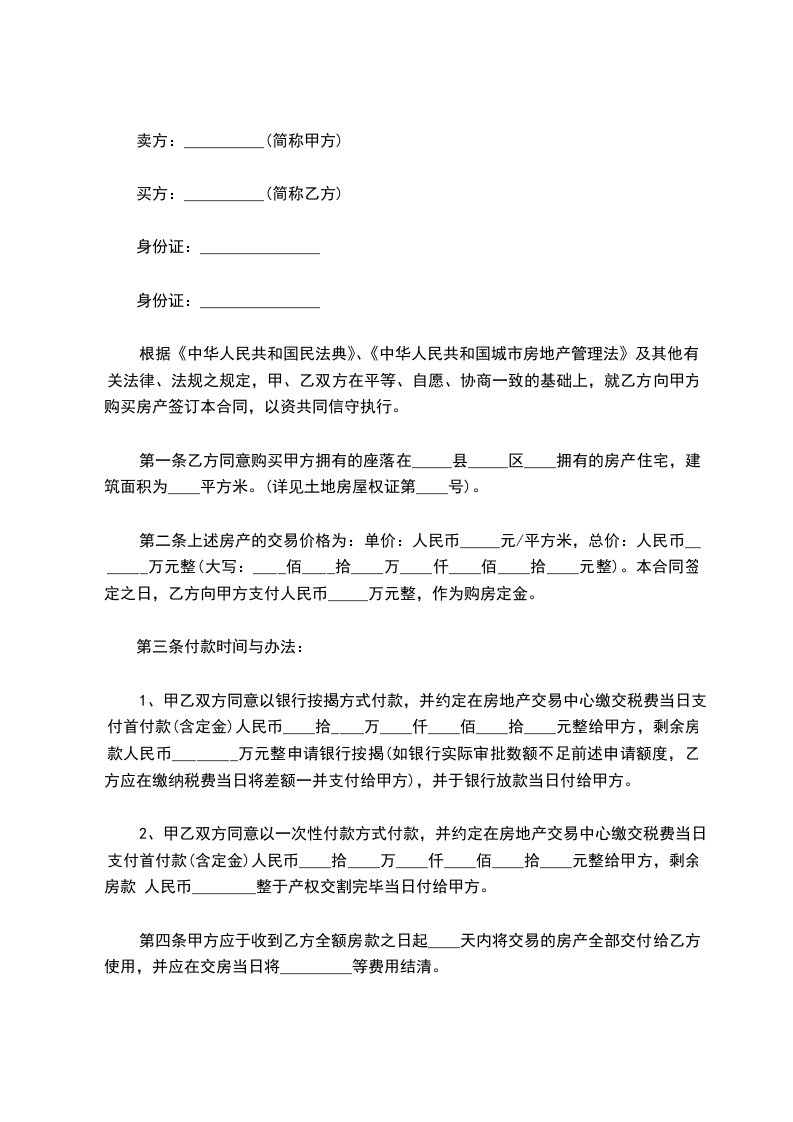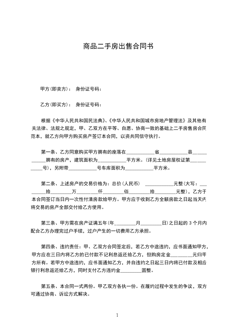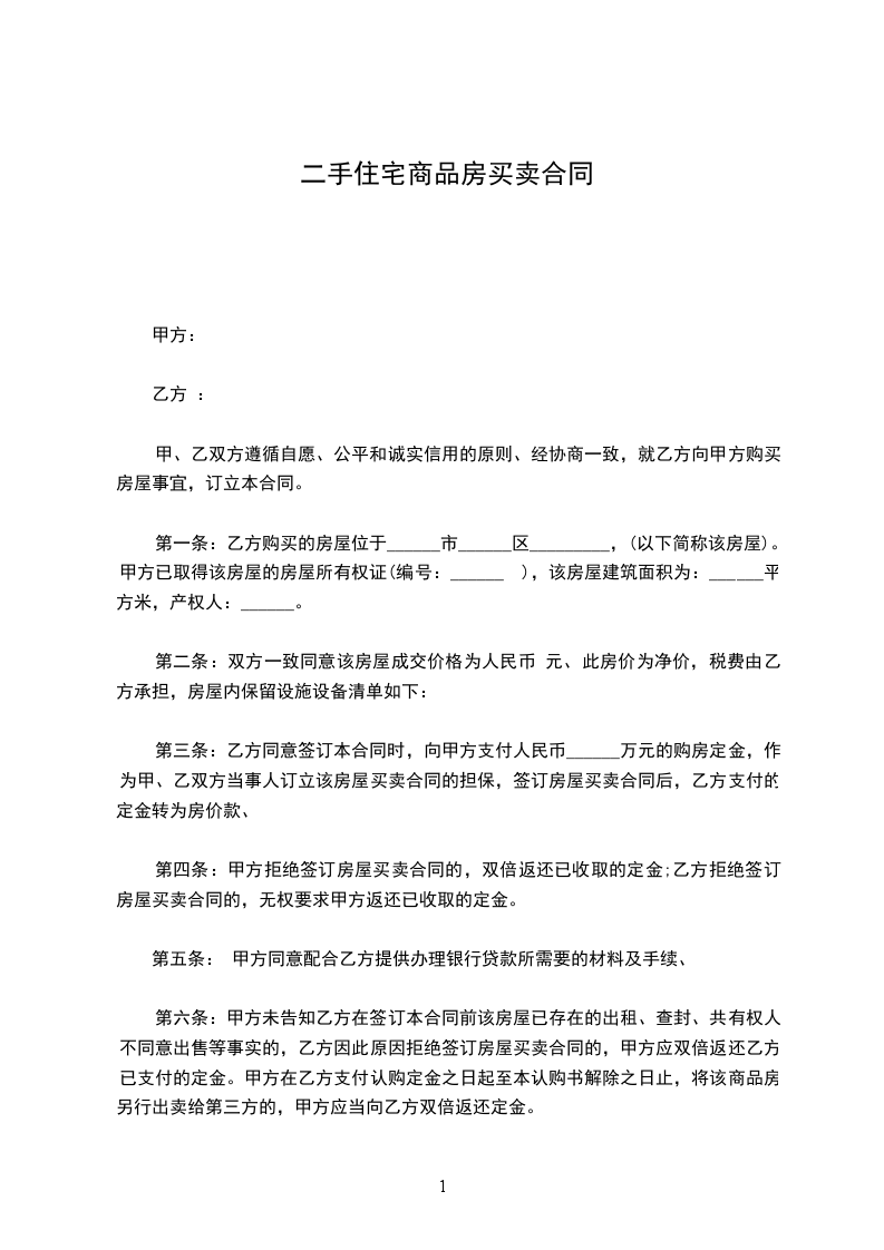 二手住宅商品房买卖合同