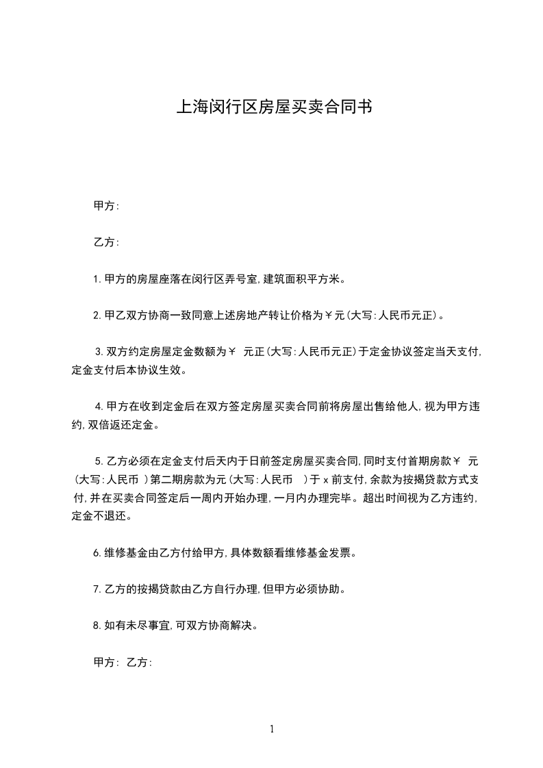 1.甲方的房屋座落在闵行区弄号室,建筑面积平方米。