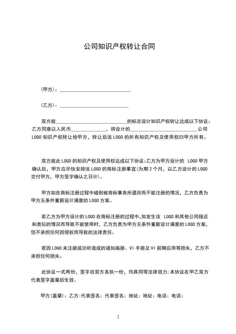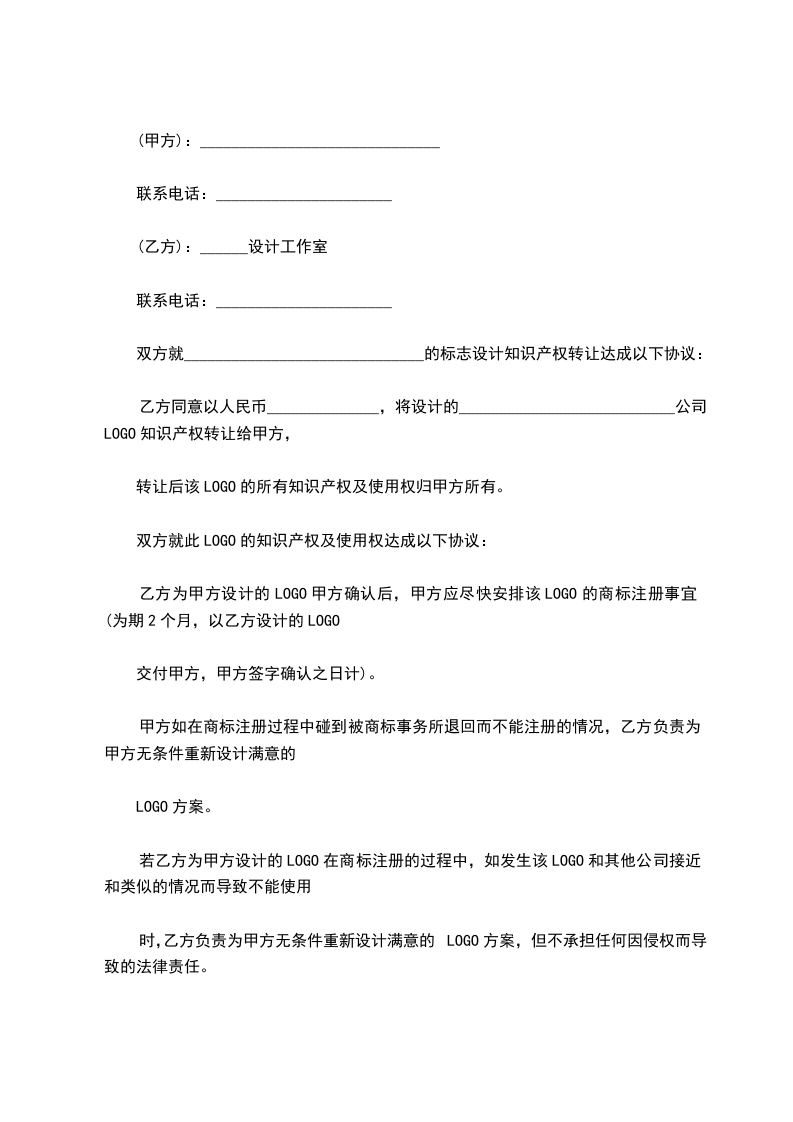 双方就______________________________的标志设计知识产权转让达成以下协议: