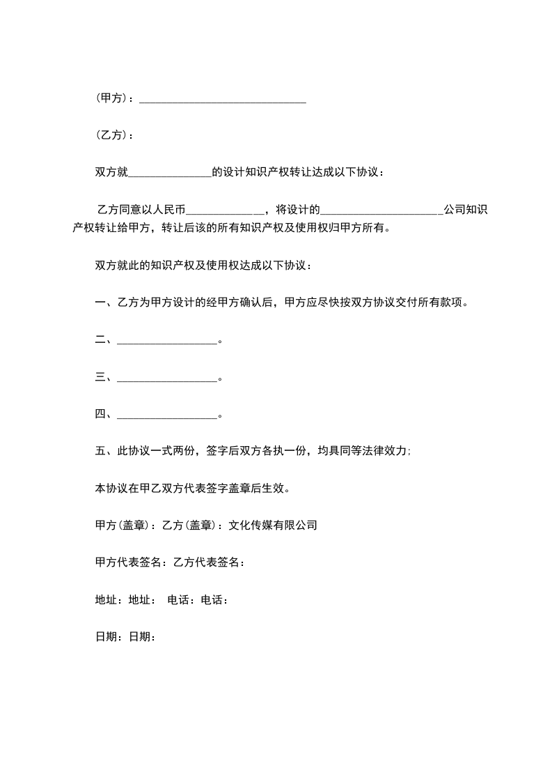 乙方同意以人民币______________,将设计的___________________________公司知识产权转让给甲方,转让后该的所有知识产权及使用权归甲方所有。