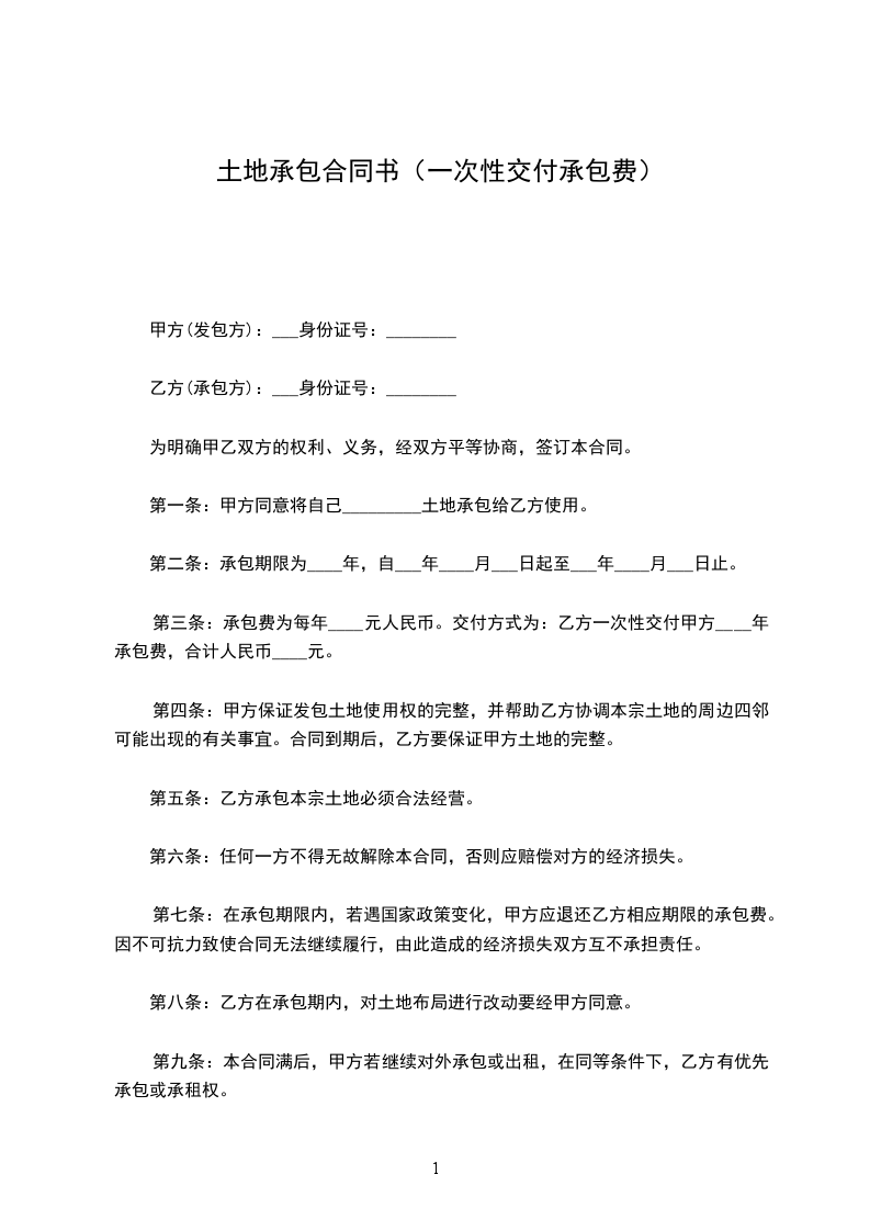 第一条:甲方同意将自己_________土地承包给乙方使用。