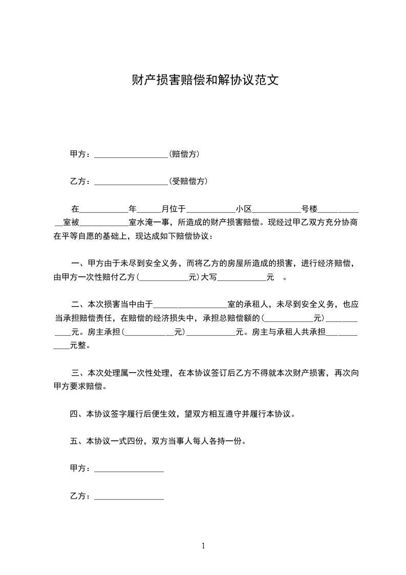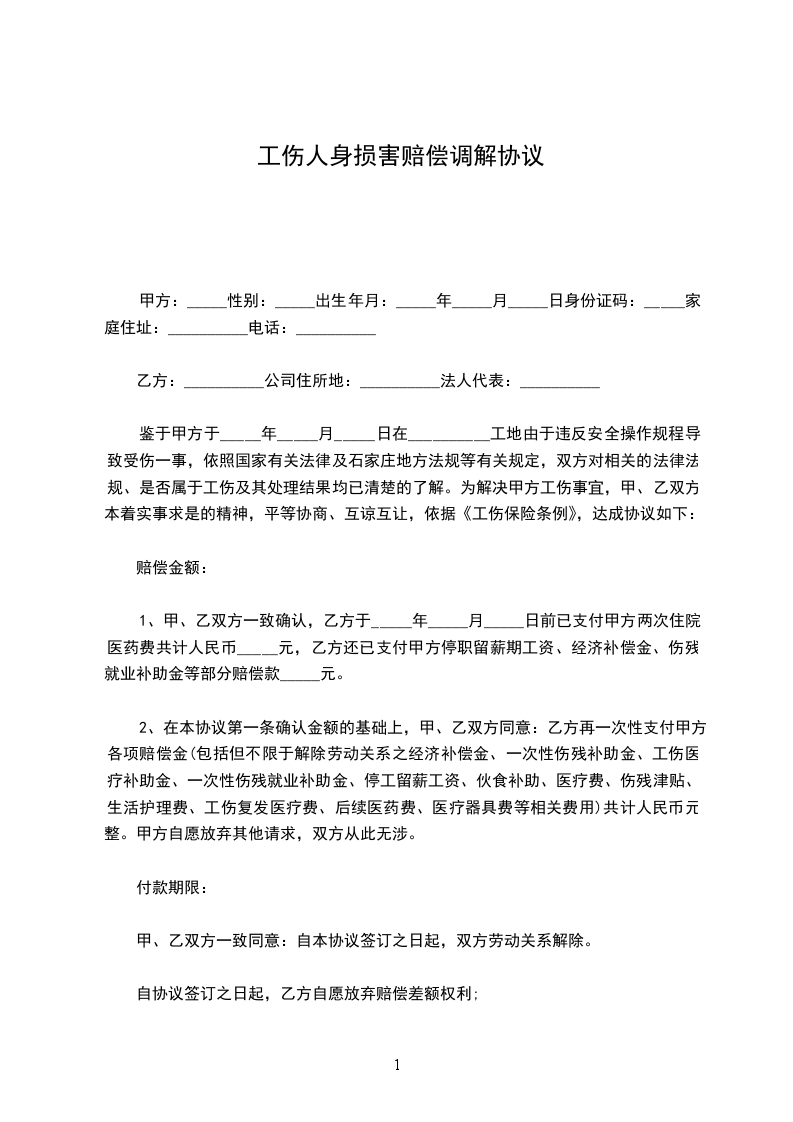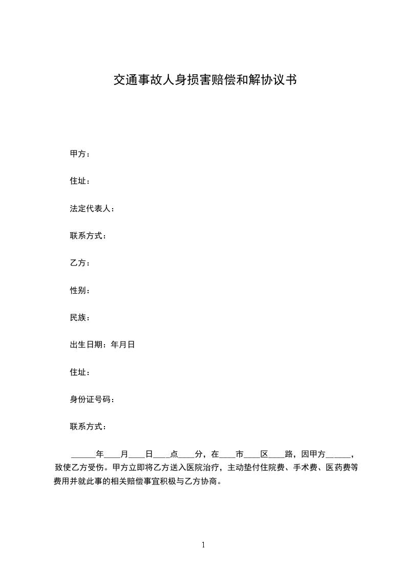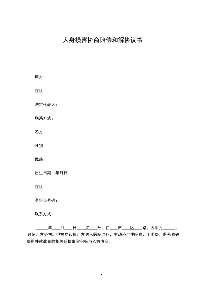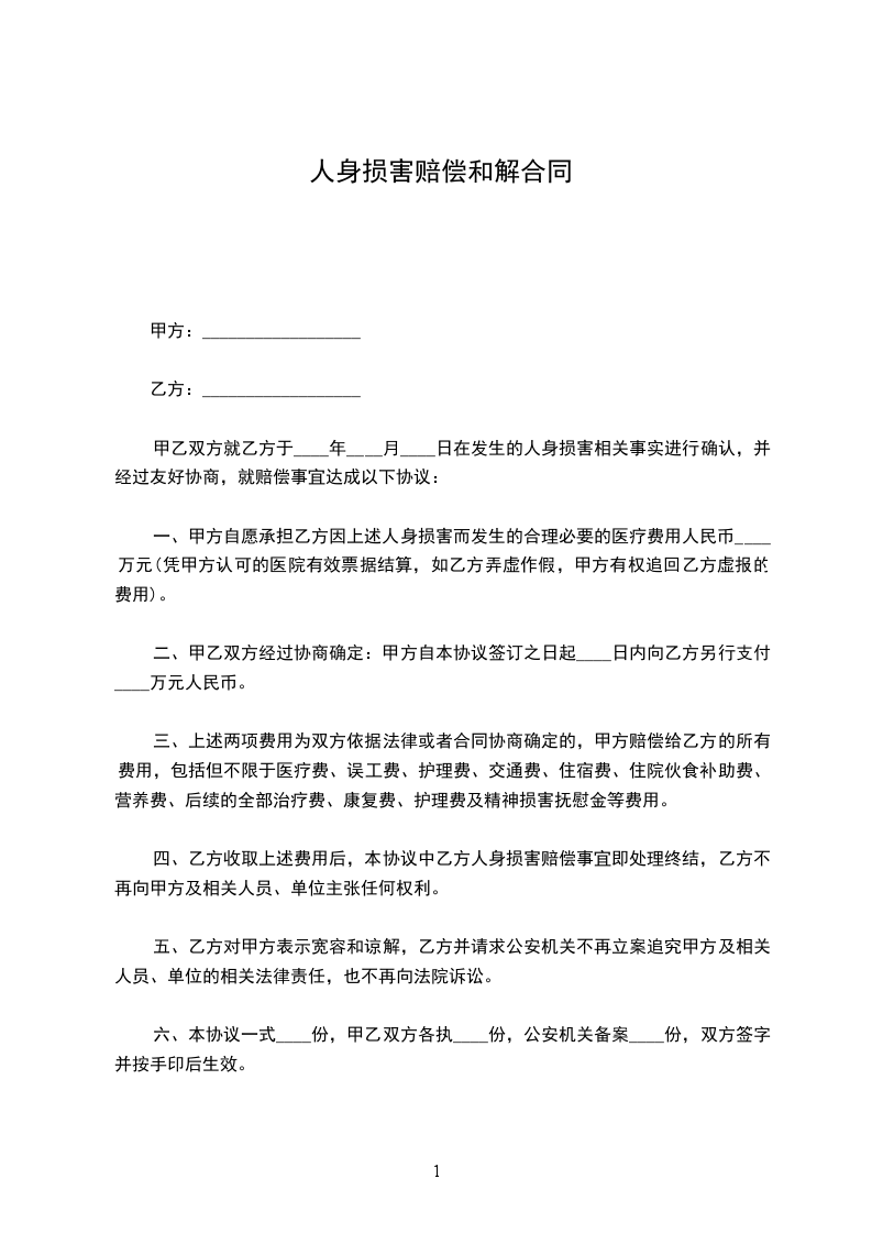 一、甲方自愿承担乙方因上述人身损害而发生的`合理必要的医疗费用人民币_____万元(凭甲方认可的医院有效票据结算,如乙方弄虚作假,甲方有权追回乙方虚报的费用);