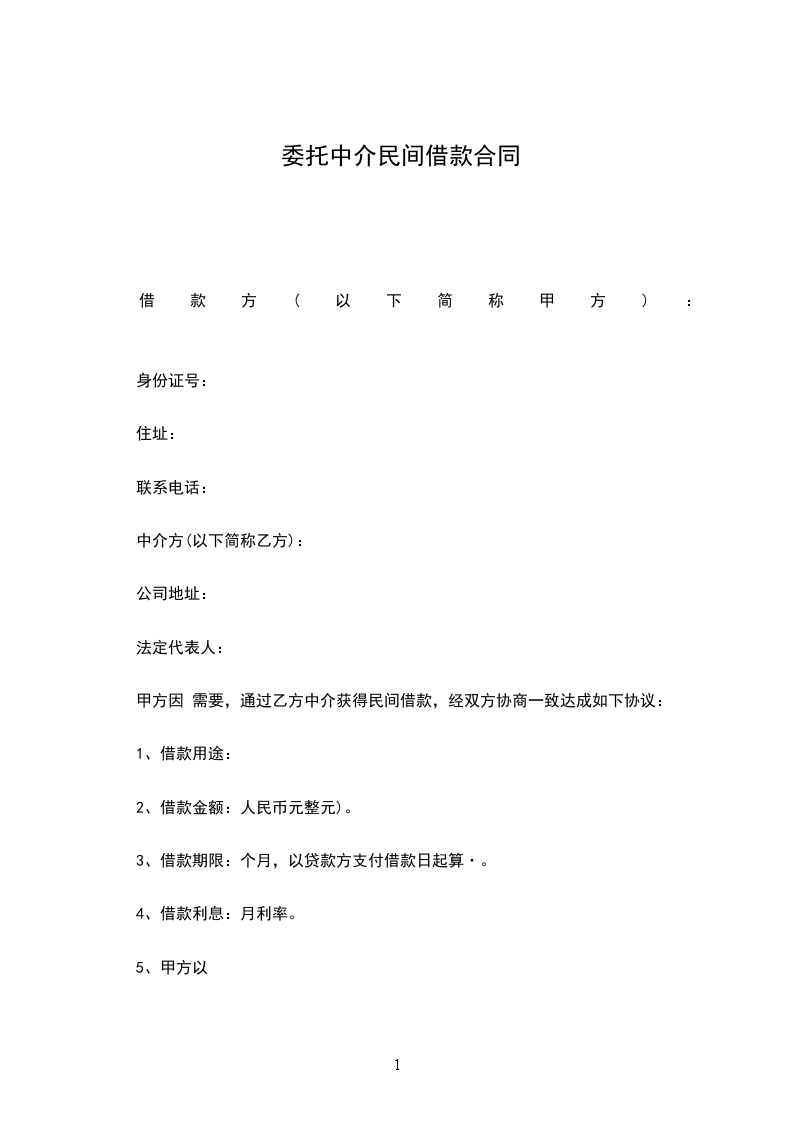 甲方因 需要,通过乙方中介获得民间借款,经双方协商一致达成如下协议: