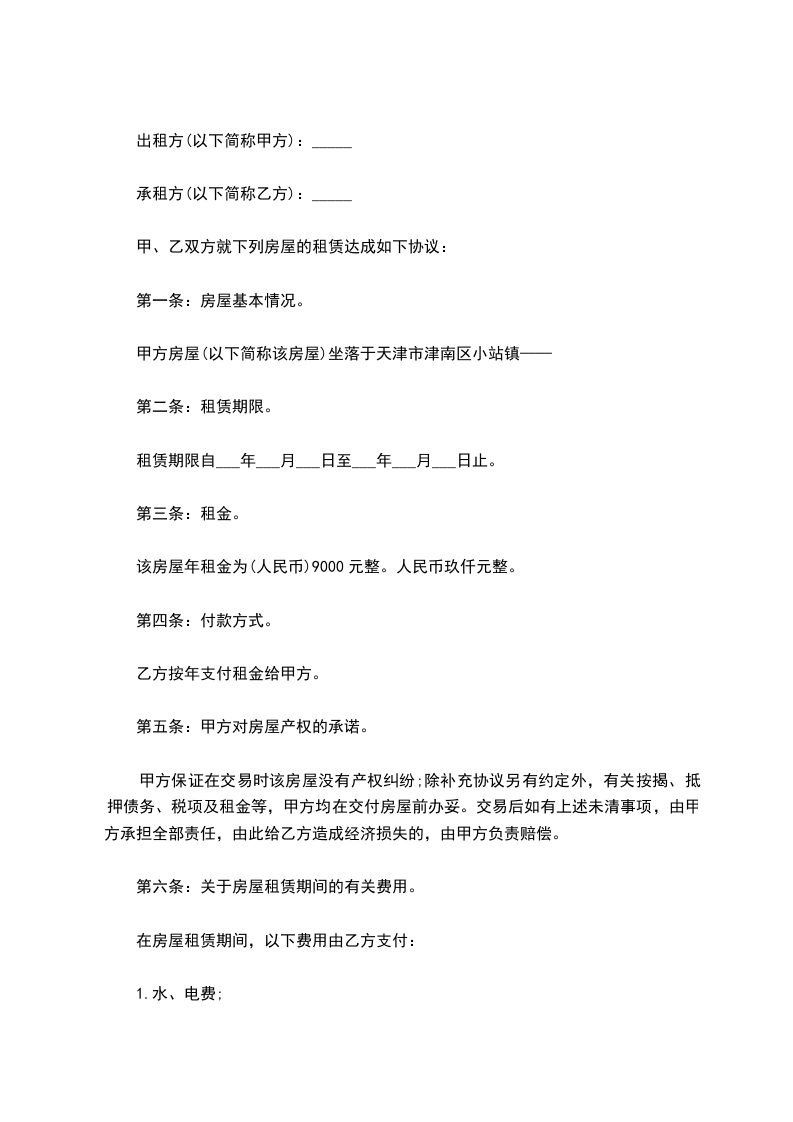 甲方房屋(以下简称该房屋)坐落于天津市津南区小站镇——