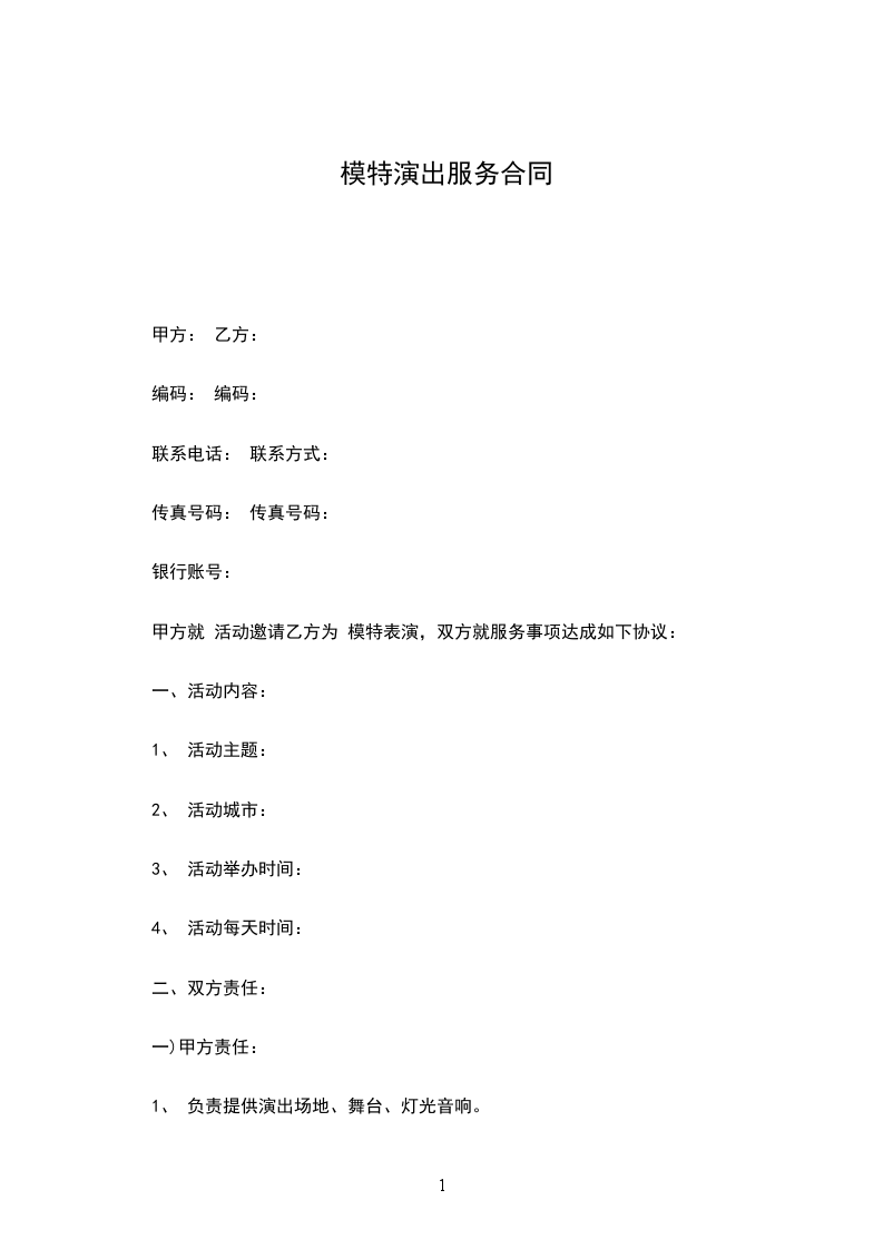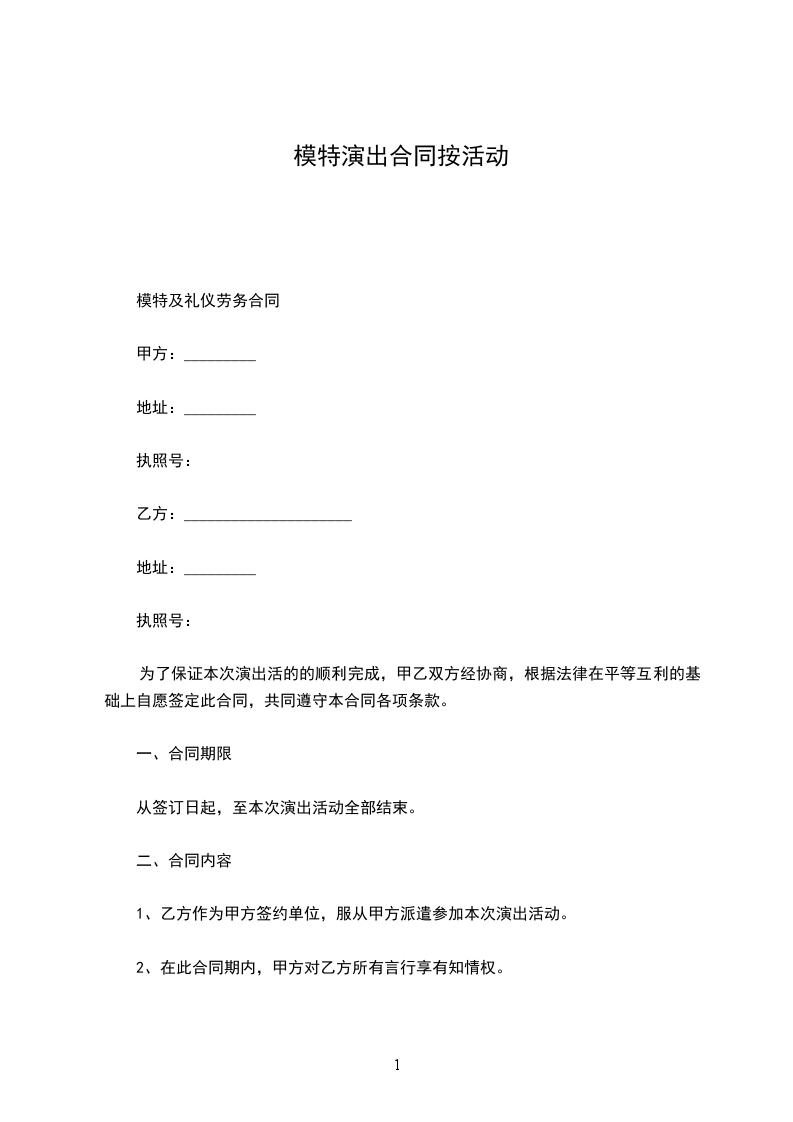 甲方就 活动邀请乙方为 模特表演,双方就服务事项达成如下协议: