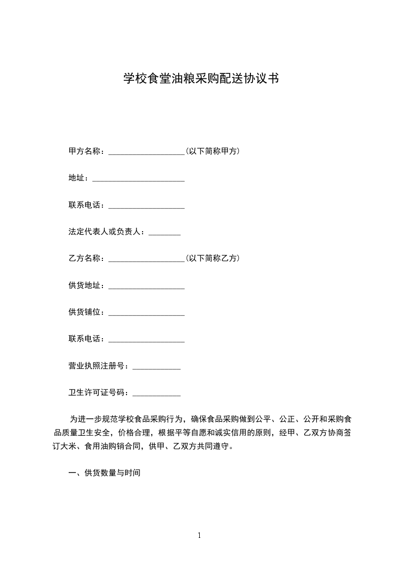 供货数量视甲方每月就餐学生人数的加工、烹饪需求而定,每周供货一次,寒暑假除外。采购时,甲方提前1-2天通知乙方。乙方如不能及时供货,须提前1天告知对方。