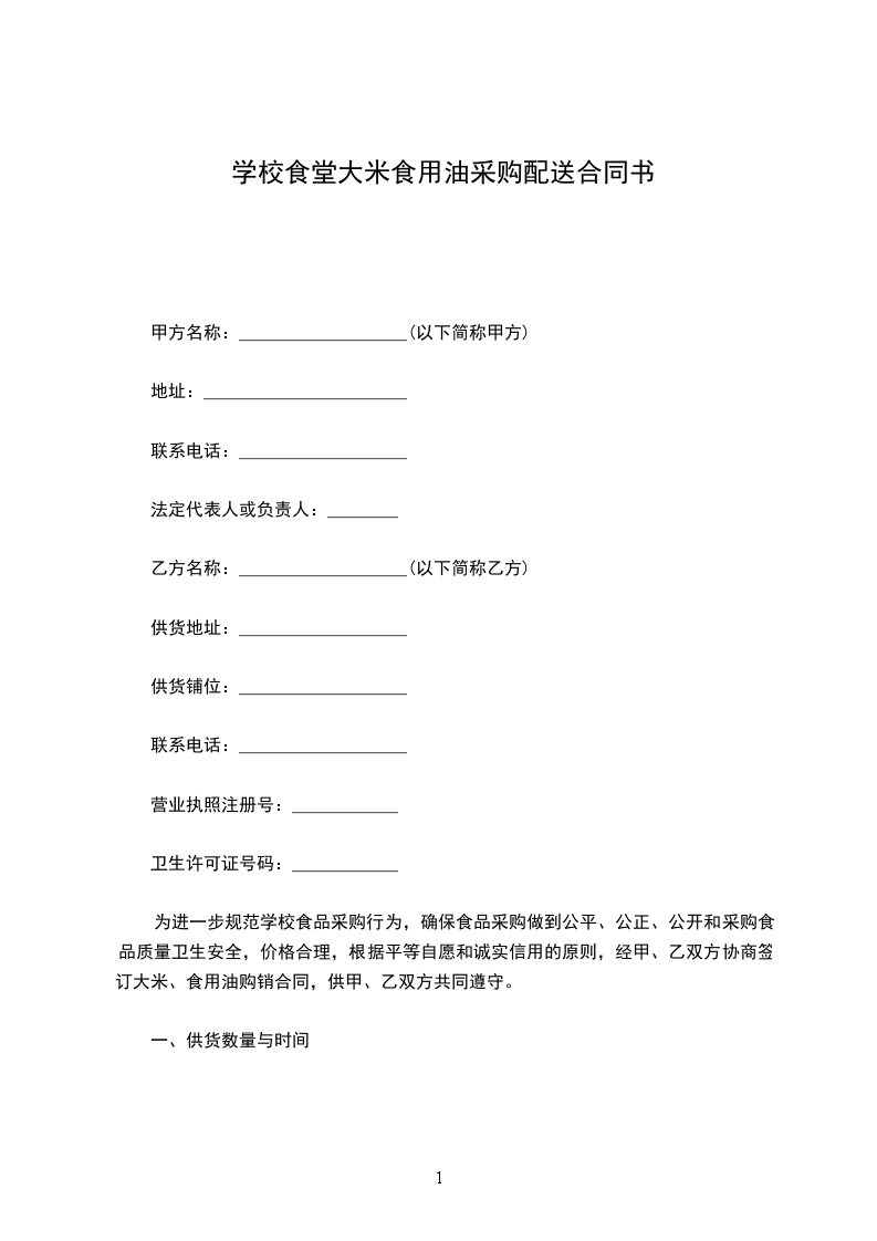为进一步规范学校食品采购行为,确保食品采购做到公平、公正、公开和采购食品质量卫生安全,价格合理,根据平等自愿和诚实信用的原则,经甲、乙双方协商签订大米、食用油购销合同,供甲、乙双方共同遵守。