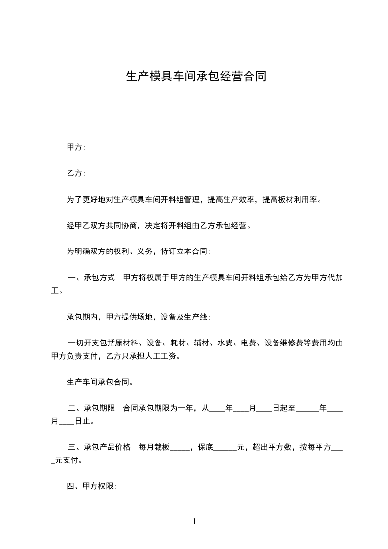 出租方与承租方为租赁___生产车间等事宜达成如下协议: