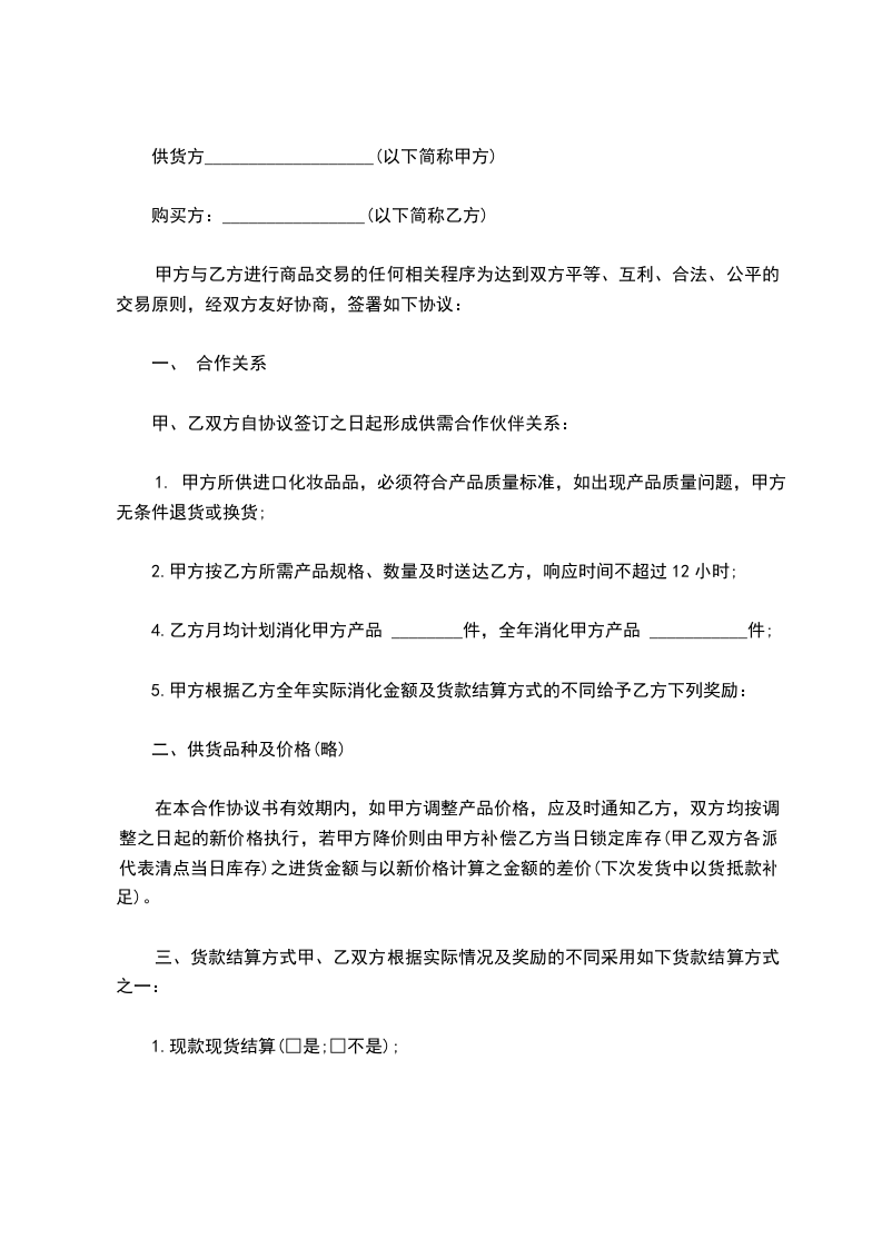 甲方与乙方进行商品交易的任何相关程序为达到双方平等、互利、合法、公平的交易原则,经双方友好协商,签署如下协议: