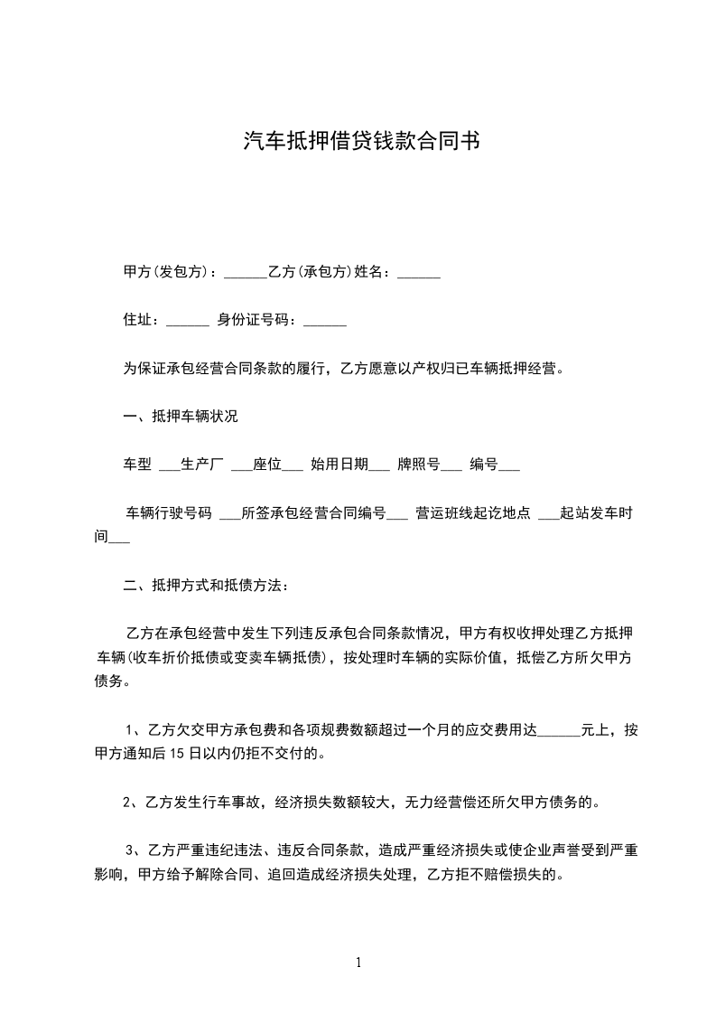 车辆行驶号码 ___所签承包经营合同编号___ 营运班线起讫地点 ___起站发车时间___