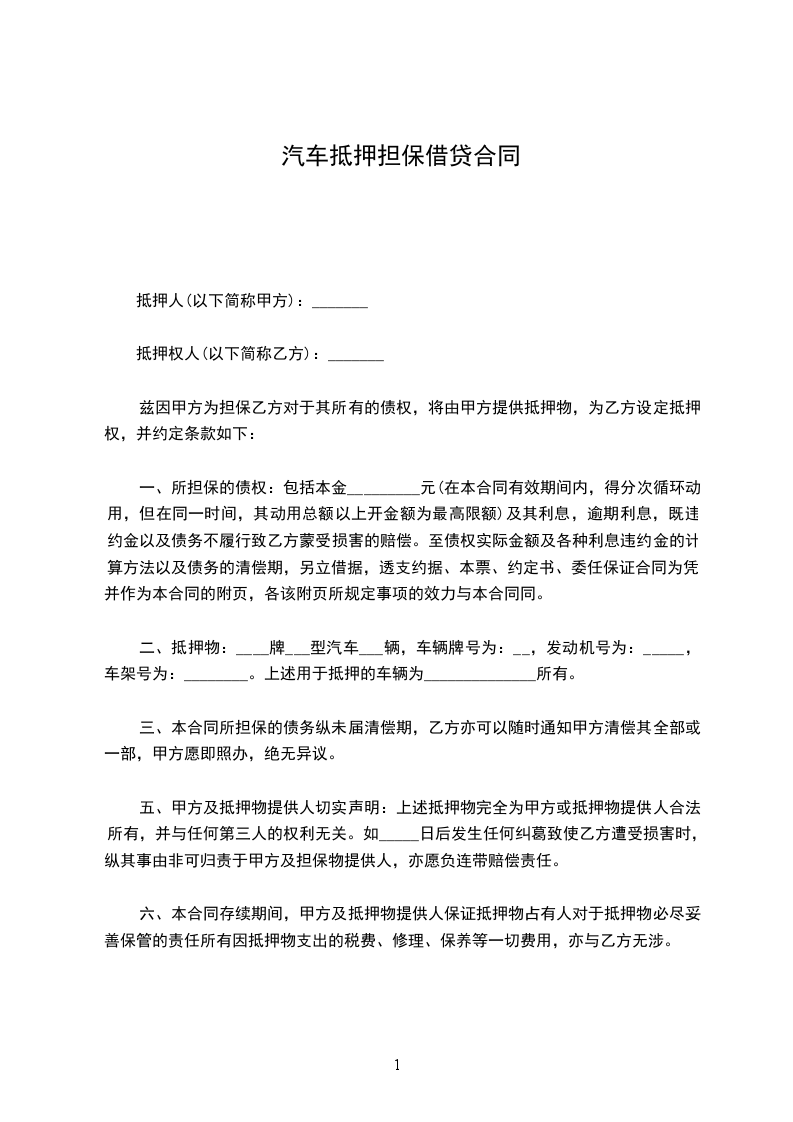 一、抵押车辆状况
