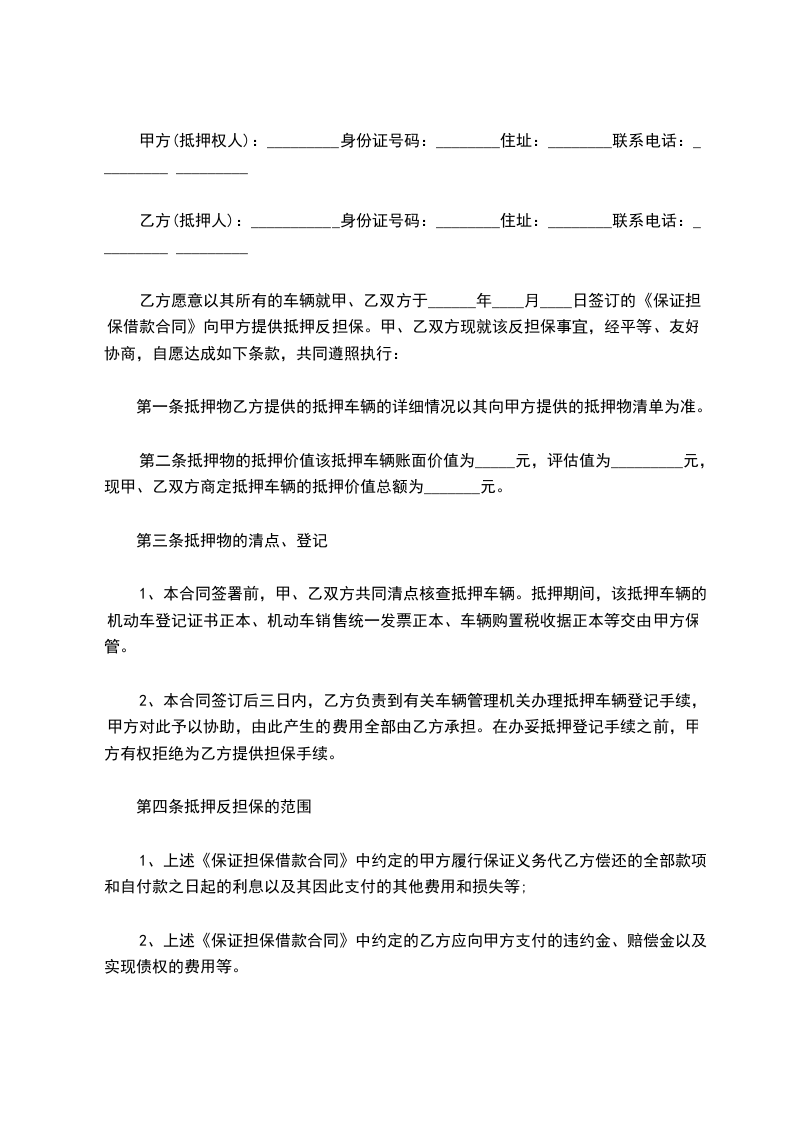 为保证承包经营合同条款的履行,乙方愿意以产权归已车辆抵押经营。