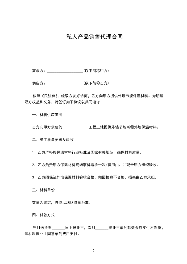 1.本合同代理期限为 ___________ 个月,自 ___________ 年 ___________ 月 ___________ 日至 ___________ 年 ___________ 月 ___________ 日。在本合同到期前的 ___________ 天内,如甲乙双方均未提出反对意见,本合同代理期自动延长 个月。合同到期后,如甲方或乙方提出终止本合同,则按本合同中合同终止条款处理。