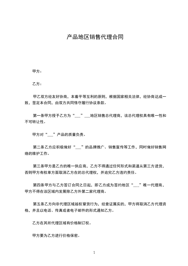 3.在本合同有效代理期内,甲方不得在 ___________ 地区指定其他代理商。