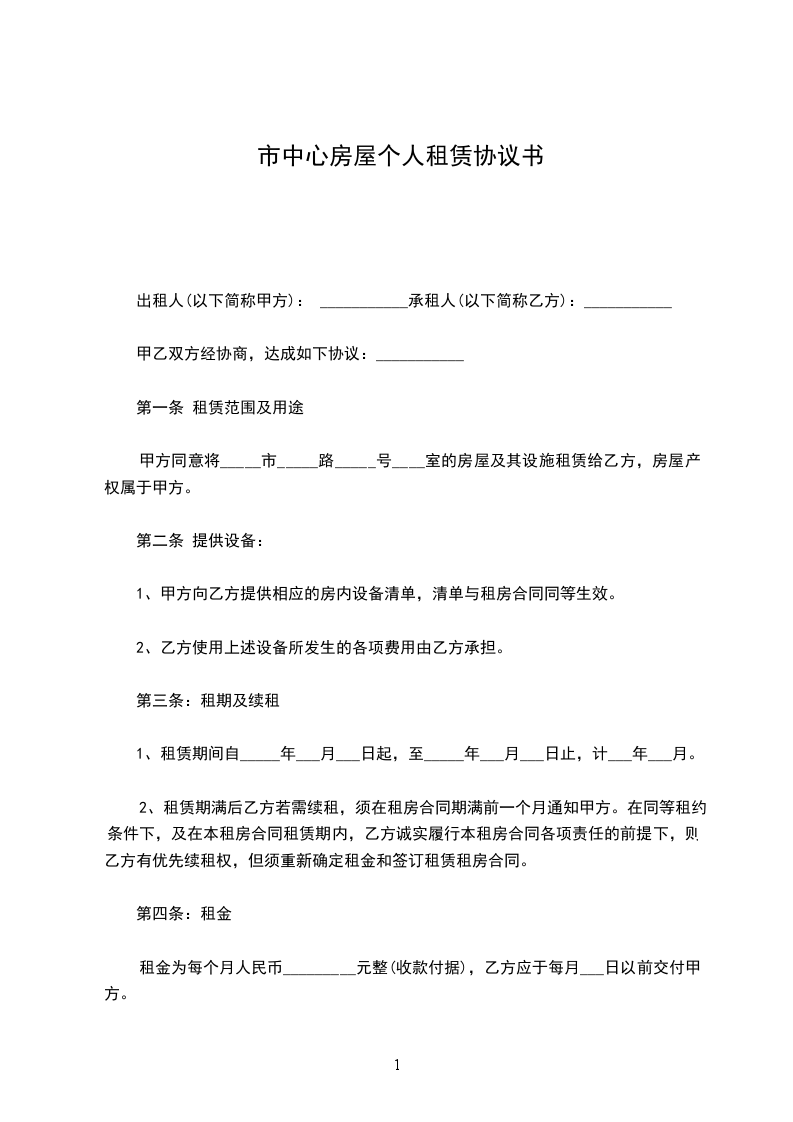 四、租用期定为____,自____ 年____ 月____ 日起至____ 年____ 月____ 日止,承租方如果继续使用或停用应在5日前向出租方提出协商,否则按协议规定照收租费或按协议期限将车调回。