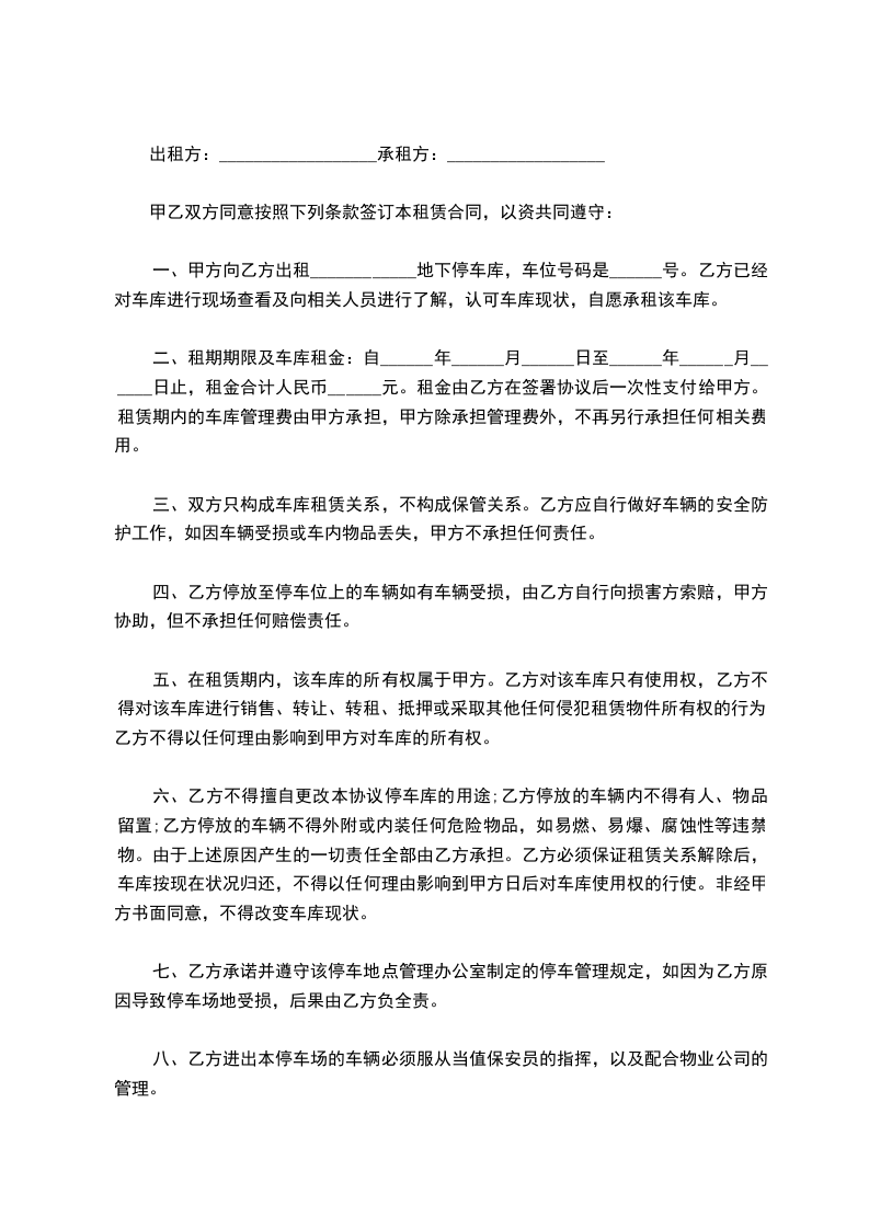 四、租用期定为____,自____ 年____ 月____ 日起至____ 年____ 月____ 日止,承租方如果继续使用或停用应在5日前向出租方提出协商,否则按协议规定照收租费或按协议期限将车调回。