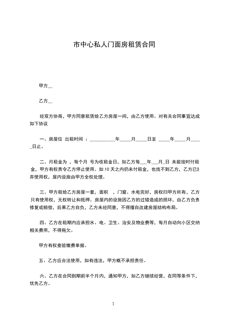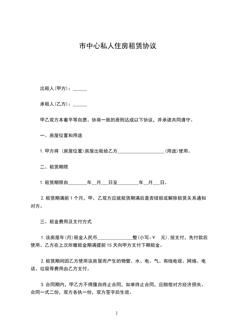 五、租金每月为____ 元,从协议生效日起计,每月结算一次,按月租用,不足一个月按一个月收费。