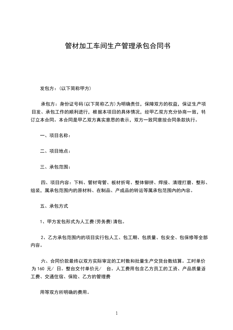 承包方:身份证号码(以下简称乙方)为明确责任,保障双方的权益,保证生产项目发、承包工作的顺利进行,根据本项目的具体情况,经甲乙双方充分协商一致,特订立本合同。本合同是甲乙双方真实意思的表示,双方一致同意按合同条款执行。