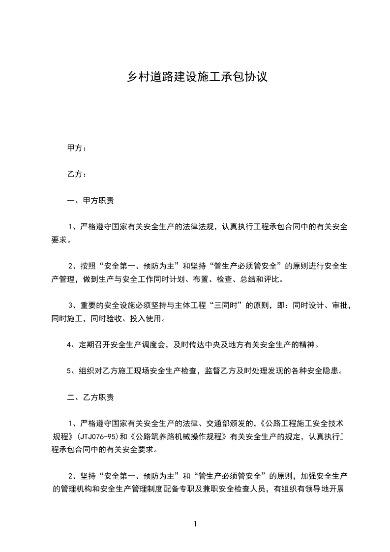 1、严格遵守国家有关安全生产的法律、交通部颁发的,《公路工程施工安全技术规程》(JTJ076-95)和《公路筑养路机械操作规程》有关安全生产的规定,认真执行工程承包合同中的有关安全要求。