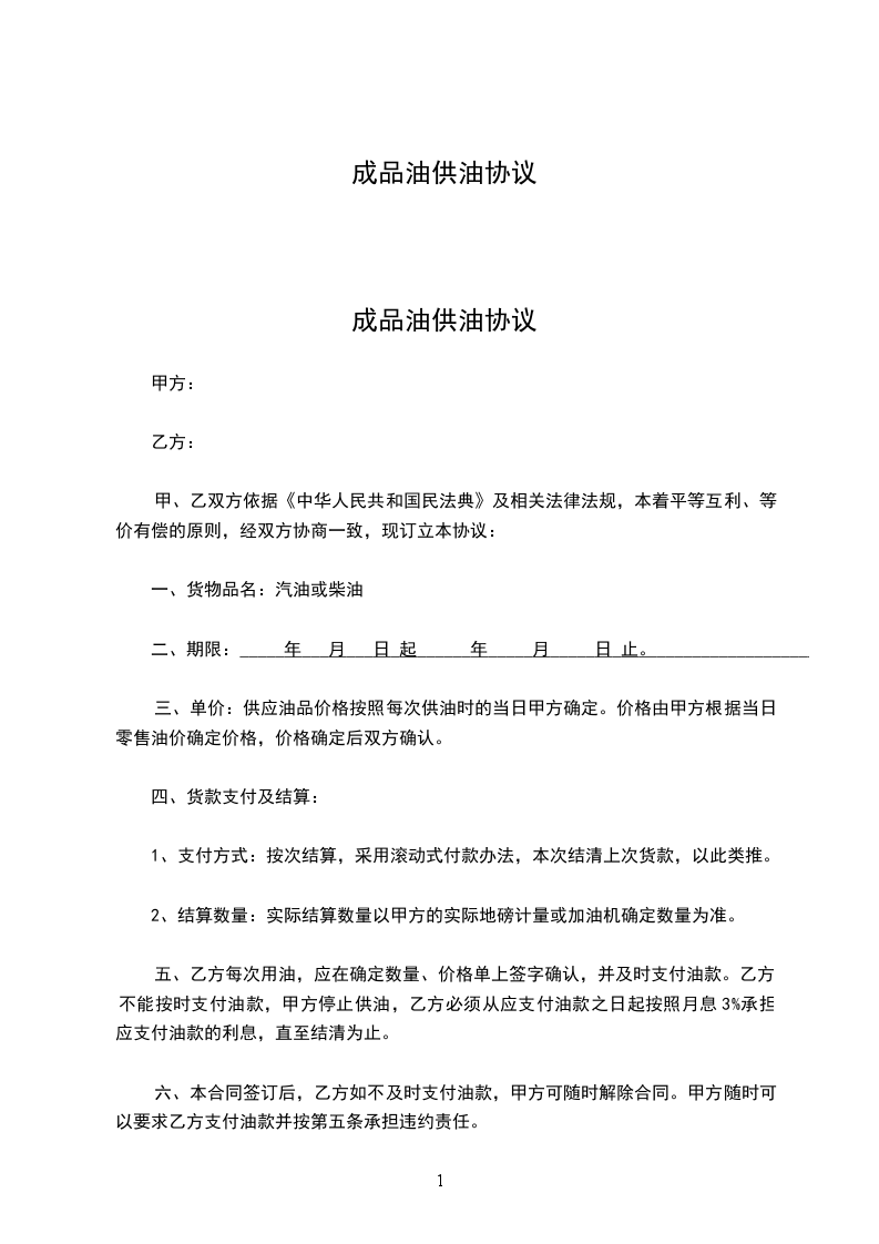 五、乙方每次用油,应在确定数量、价格单上签字确认,并及时支付油款。乙方不能按时支付油款,甲方停止供油,乙方必须从应支付油款之日起按照月息3%承担应支付油款的利息,直至结清为止。