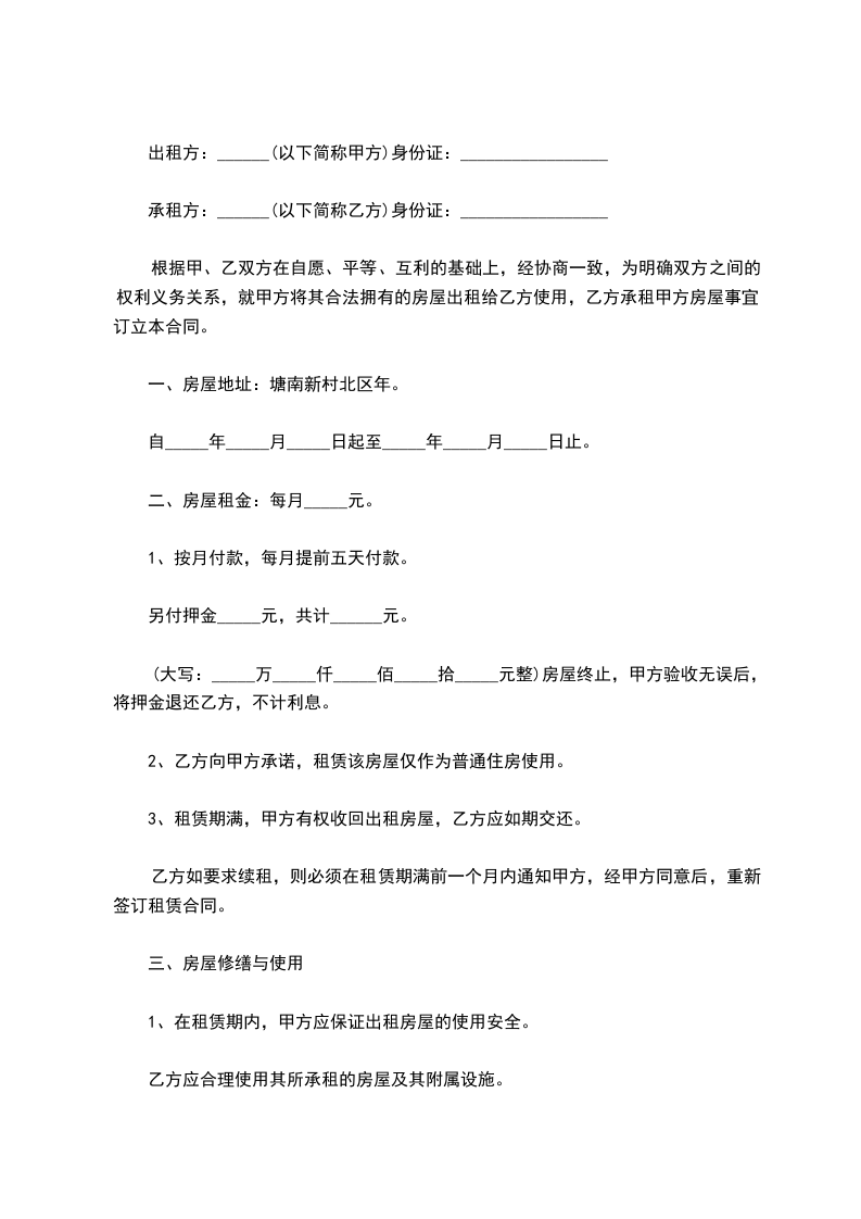 2、乙方向甲方承诺,租赁该房屋仅作为普通住房使用。