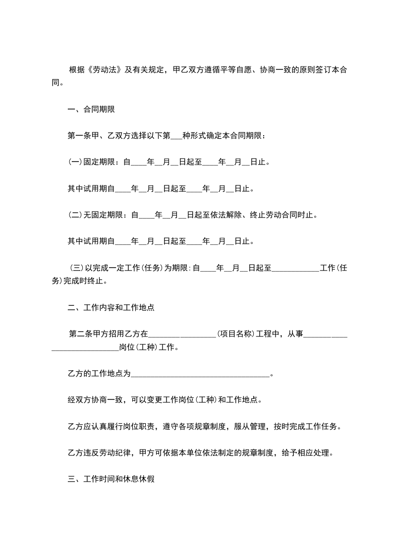 第二条甲方招用乙方在_________________(项目名称)工程中,从事____________________________岗位(工种)工作。