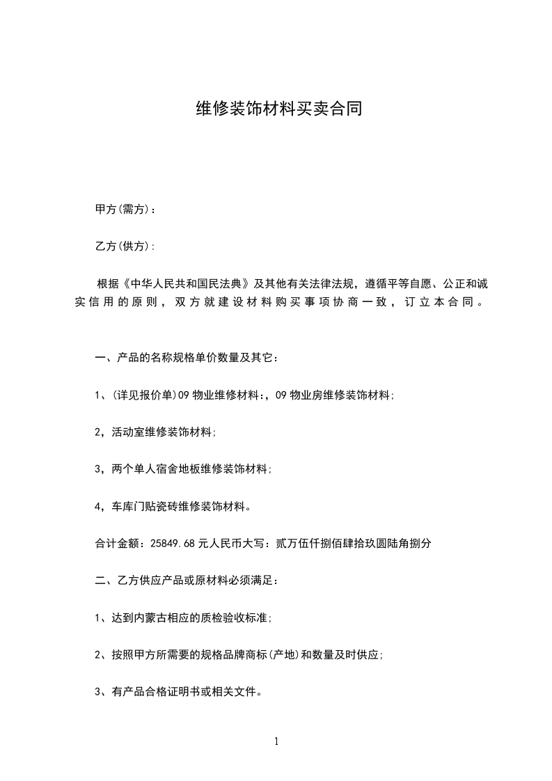 根据《中华人民共和国民法典》及其他有关法律法规,遵循平等自愿、公正和诚实信用的原则,双方就建设材料购买事项协商一致,订立本合同。